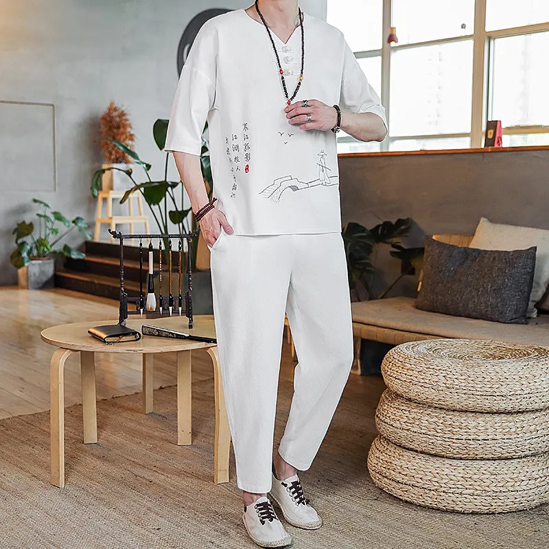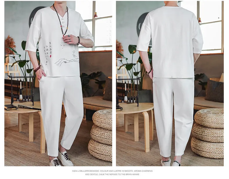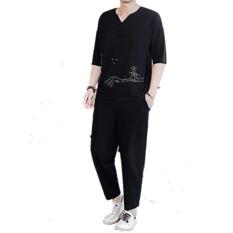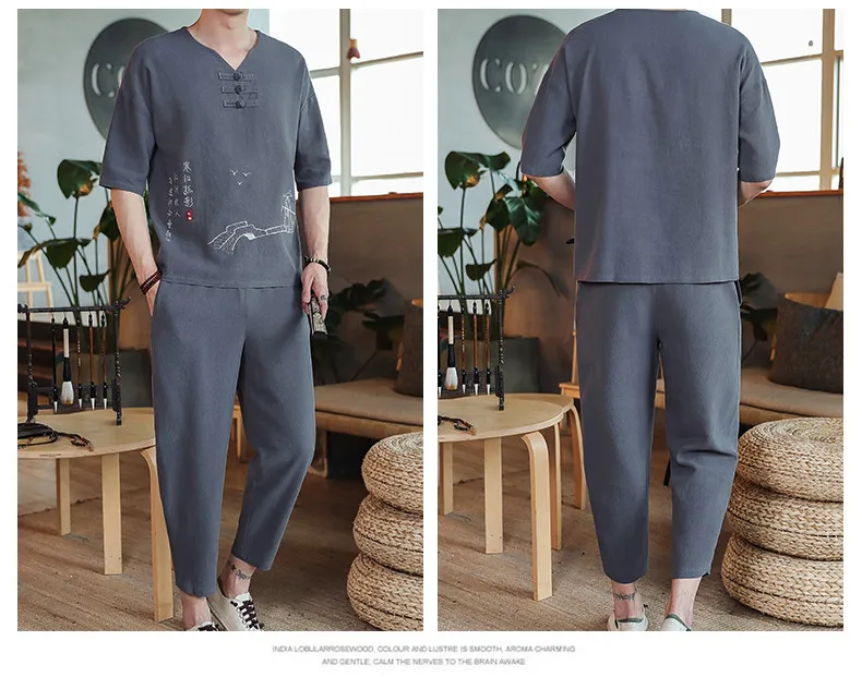 Мужские костюмы дзен из хлопка и льна одежда для йоги медитации тайцзи чайной