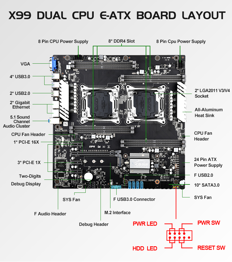100% новый и высокое качество! Поддержка памяти сервера REG ECC. Поддержка M.2 NVME SSD. Высокая совместимость для более высокого опыта. Все твердые конденсаторы, тонкая работа, профессиональная стабильность. Гнездо питания имеет 2*8-pin, 24-pin разъем питания.Возможны отклонения в 1-3 мм вследствие измерений вручную.