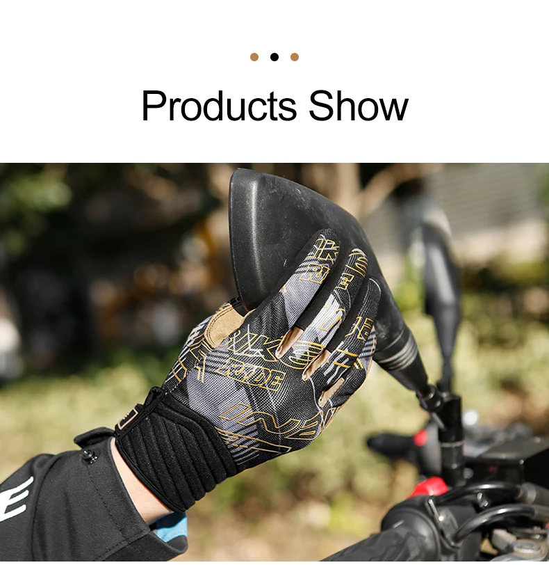 Name: IM903 motorcycle gloves Material: breathable+wearable microfiber Touch: index finger touch screen Protection: thickened protection at fist and joints Color: brown, grey, green Pad: thickened TPR Function: shock-absorption&anti-slip, breathable&anti-wear Size: S/M/L/XL/2XL