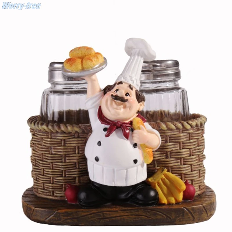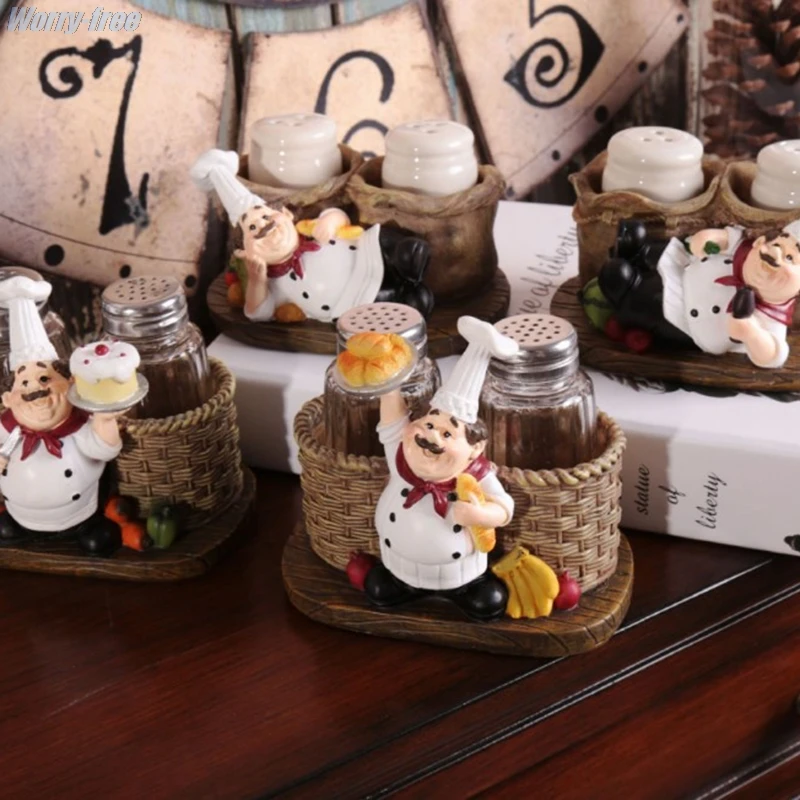 [Удобство] Положите симпатичный держатель для бутылок с солью и перцем Статуэтка шеф-повара на столешницу светильник ить людей очаровательным и любезным улыбающимся лицом.