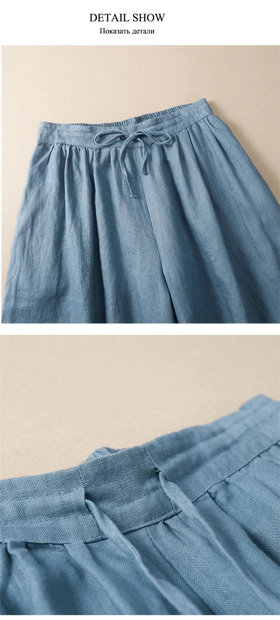 Название брендаНетНомер моделиLHJ040ПроисхождениеКитайМатериалХлопокМатериалЛенПолДля женщинСтильНа каждый деньФактура тканиВ рубчикТип рисункаСплошнойДекоративные элементыNONEФитСвободныйВозрастВозраст 18-35 летДлинаЧуть выше щиколоткиСезонЛетоТип застежкиЭластичная резинкаТип посадкиMIDСтиль брюкШирокиеСтиль лицевой стороныПлоскийЕдиница измерения100000015Количество1