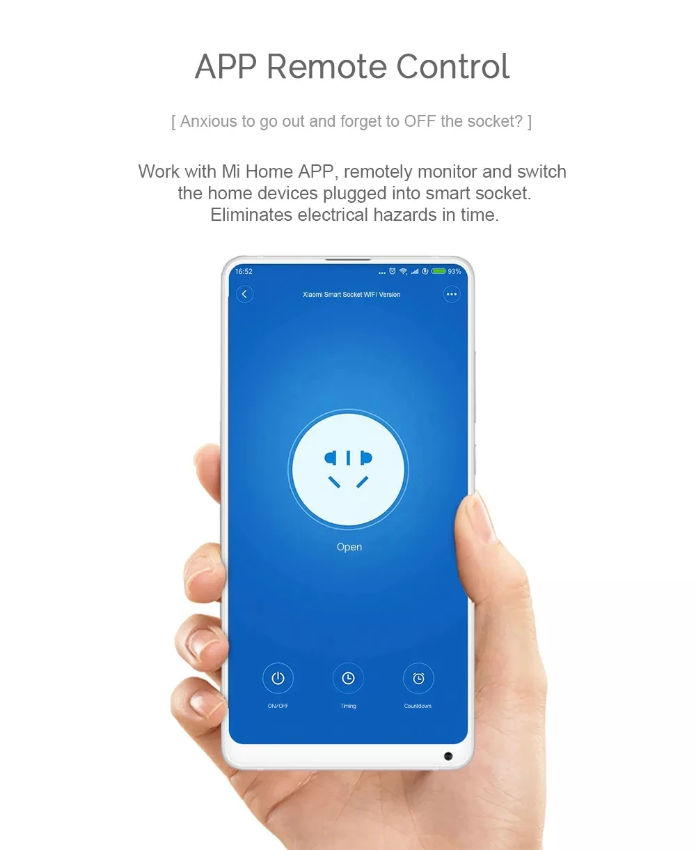 Основные характеристики:* Умная розетка/вилка Xiaomi Mijia* Переключатель времени* Дистанционное управление через приложение* Максимальная мощность 2500 Вт