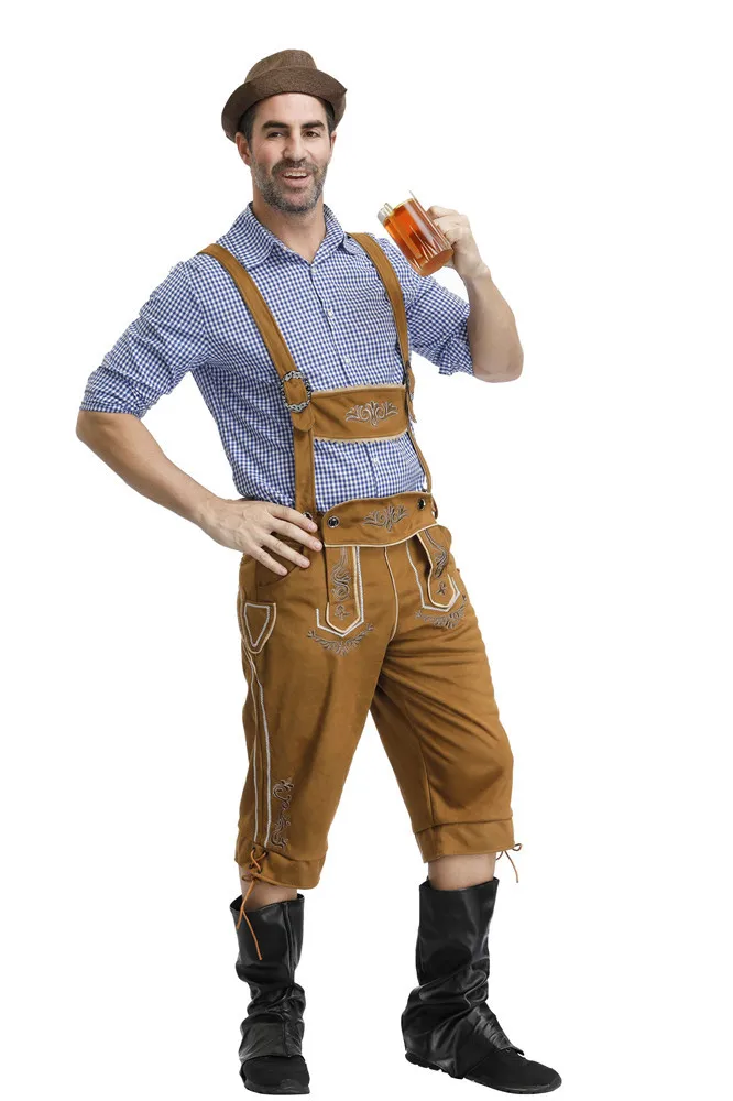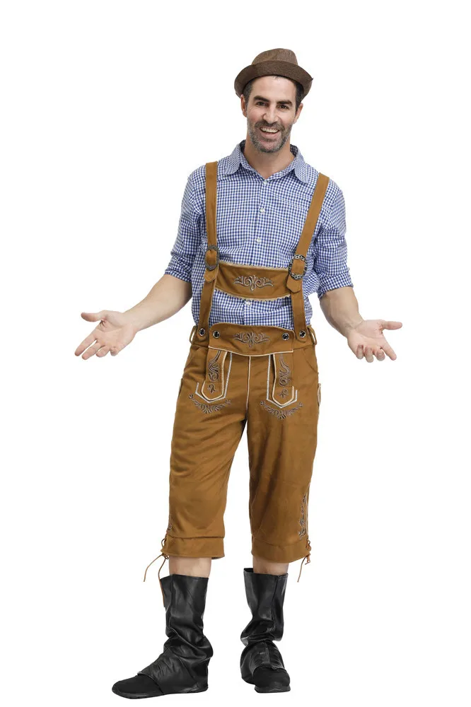 Новый стиль, немецкая пивная праздничная одежда для взрослых, бармен цвета хаки, пивной костюм на бретелях, косплей для мальчиков из коровьей кожи