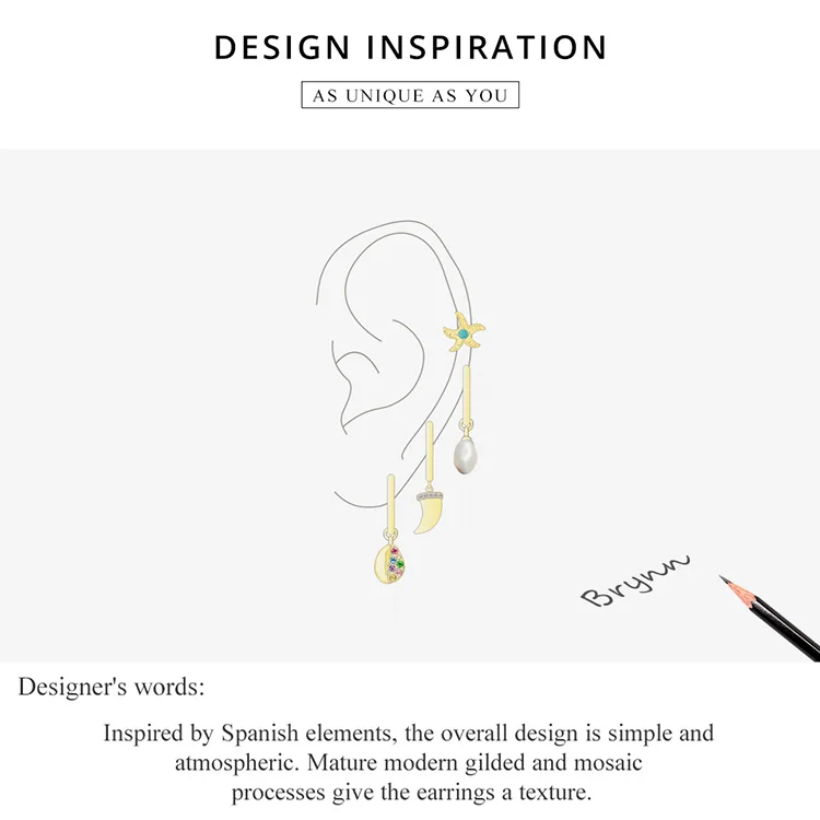 ❤【Specification smooth плавные линии Контурные красивые формы, украшенные настоящим золотом и цирконом, мастерство и модное выражение, показывая уникальную и очаровательную испанскую культура.