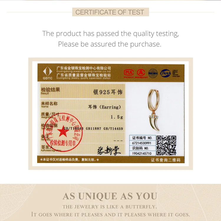 Волчий зуб: диаметр ушного кольца: 0,9 см, размер: 2,4*0,9 см, вес: 1,5 г