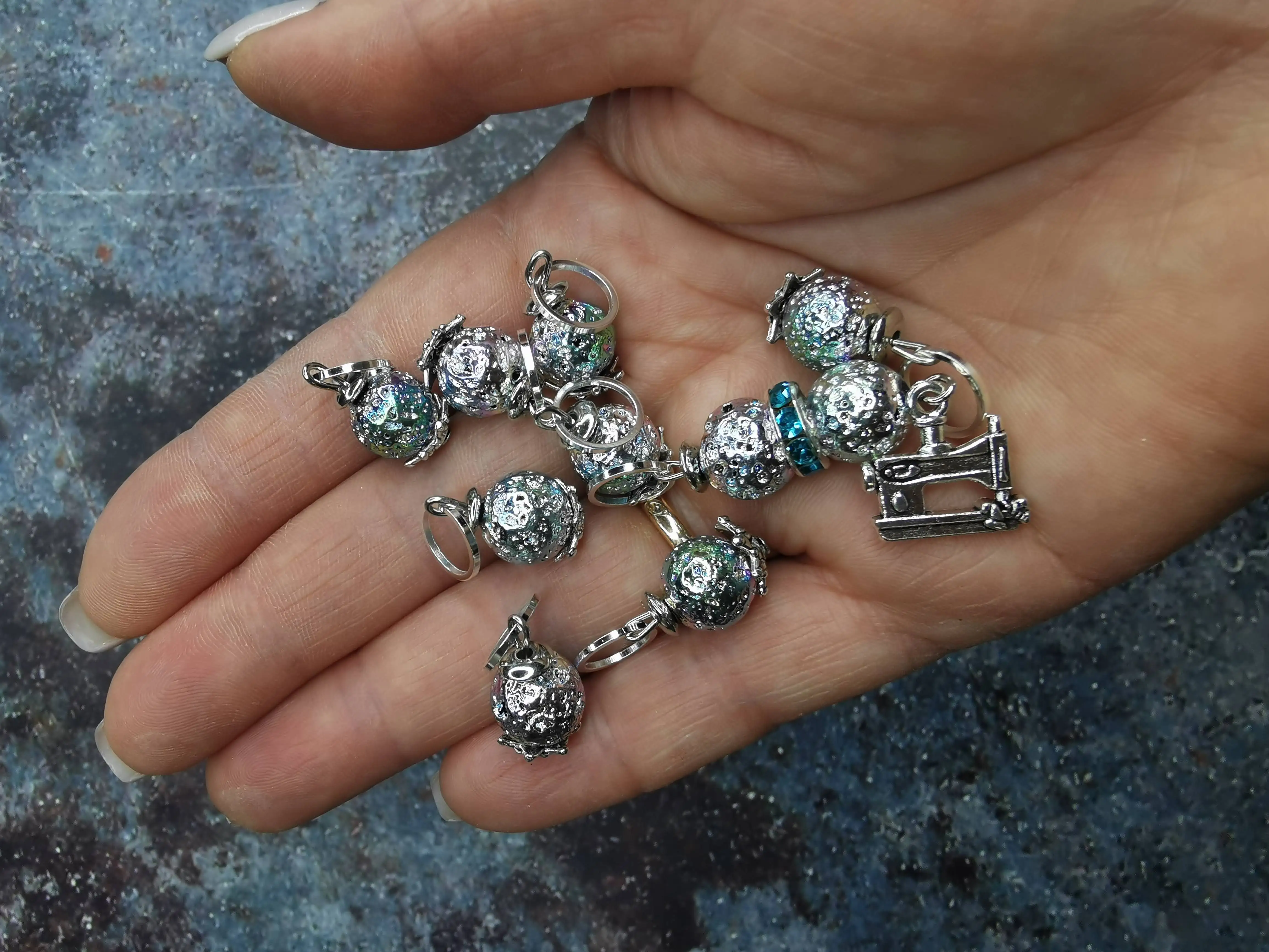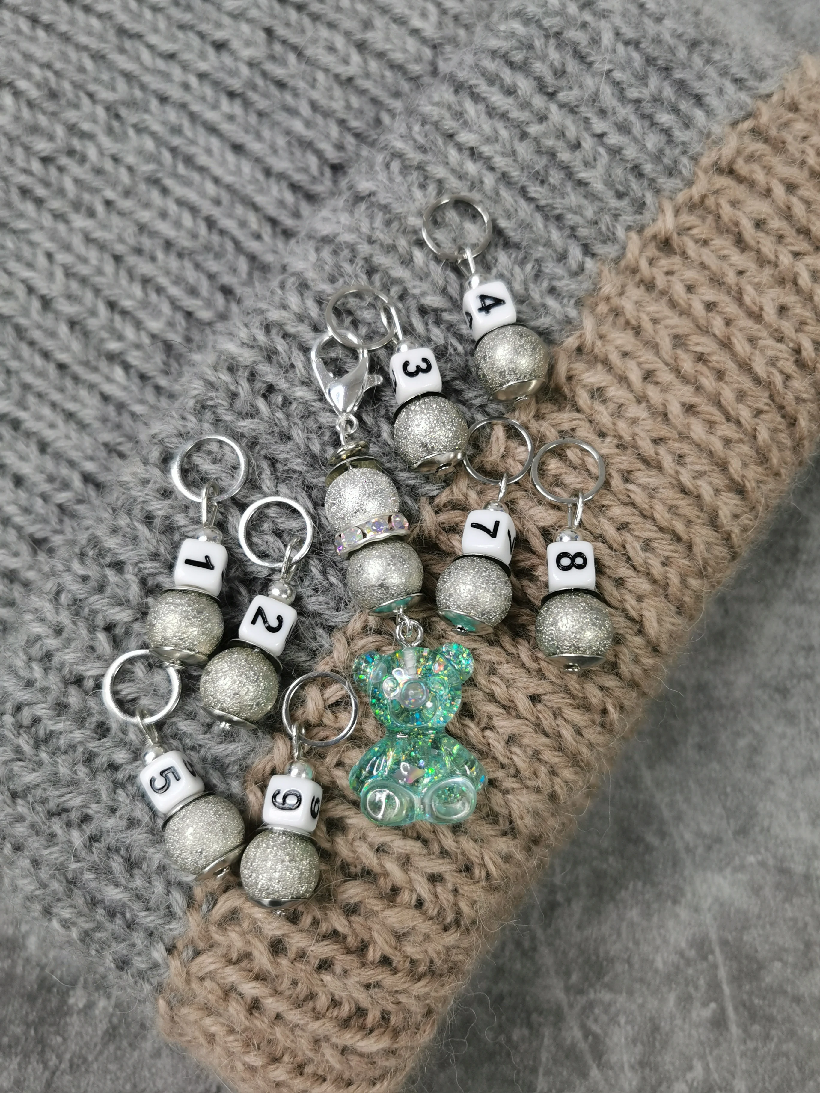 We have sets of handmade markers made of natural stones. The number of markers in the set is 9 PCs. It is very convenient for lovers of circular knitting.