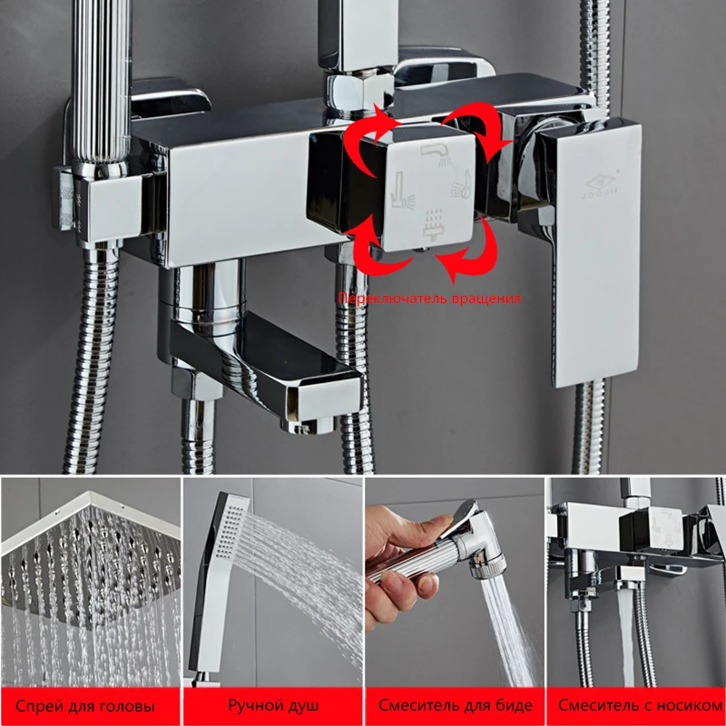 Black Oil Rubbed Bronze Wall Mounted Bathroom Dual Handles Mixer Taps & Rain Shower Faucet Set with Hand Head Wrs494 | Обустройство