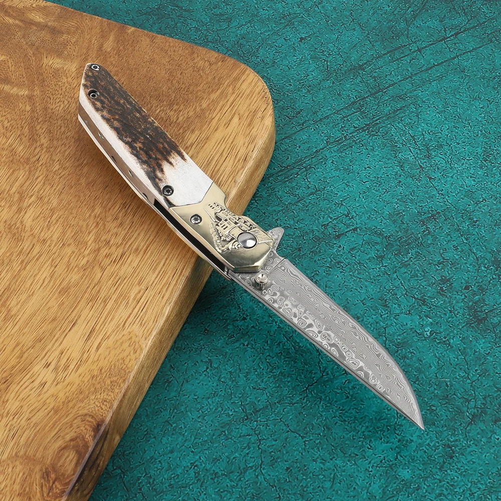 Примечание: натуральные оленьи рога имеют различные формы и Дамасская сталь текстуры отличаются, каждый из них уникален, при условии фактического продукта получил