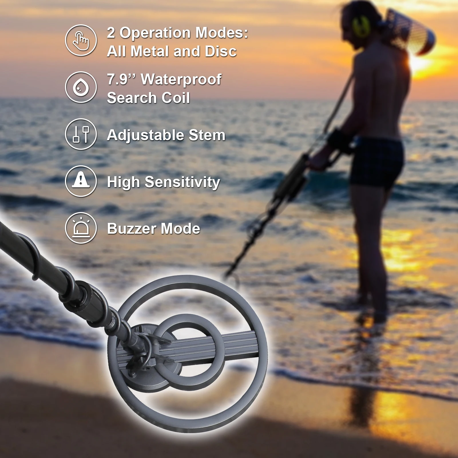 Водонепроницаемый диаметр поисковой катушки: 200 мм/7,9 дюйма