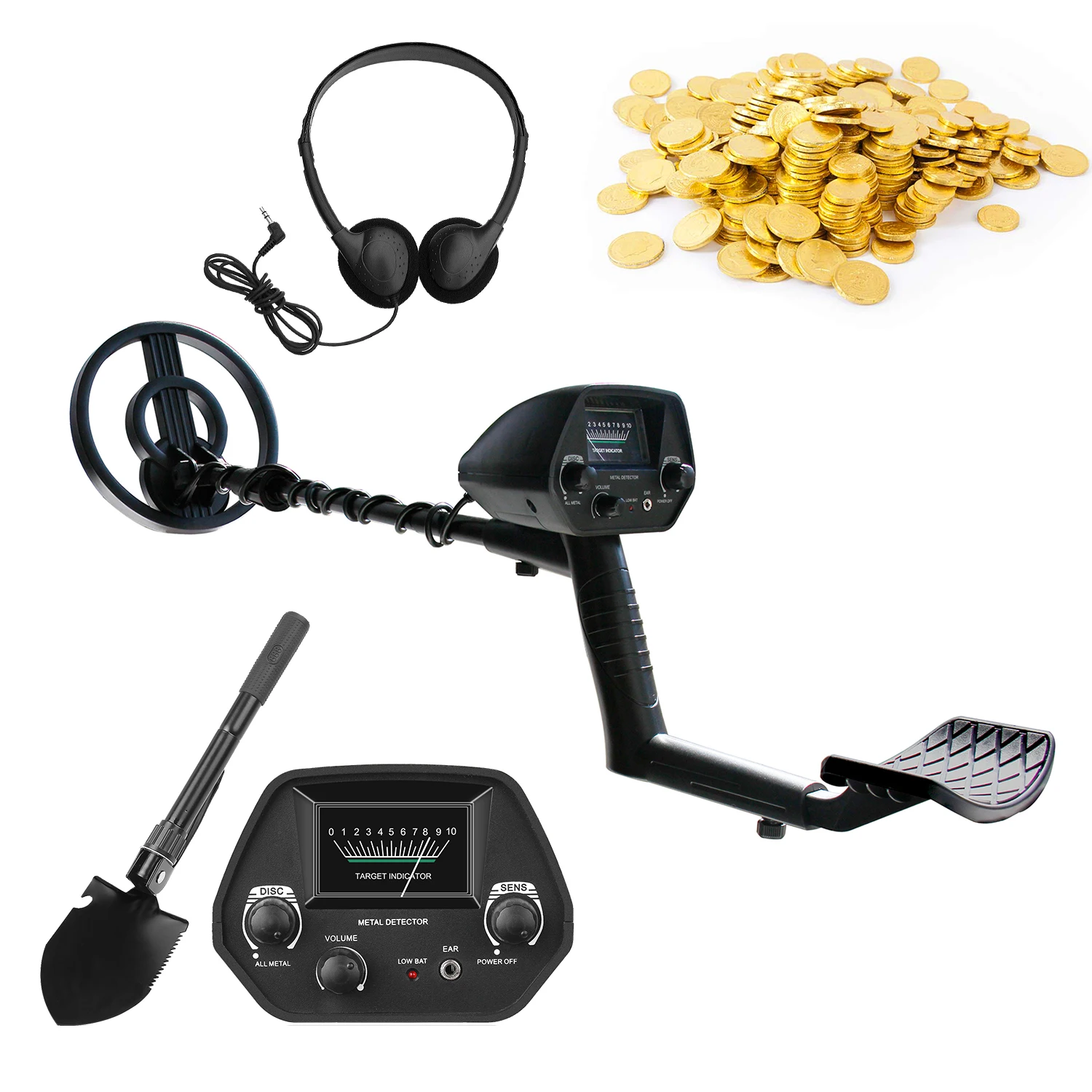 Тип: только металлический искатель/с лопатой/с наушниками и лопатой (опционально)