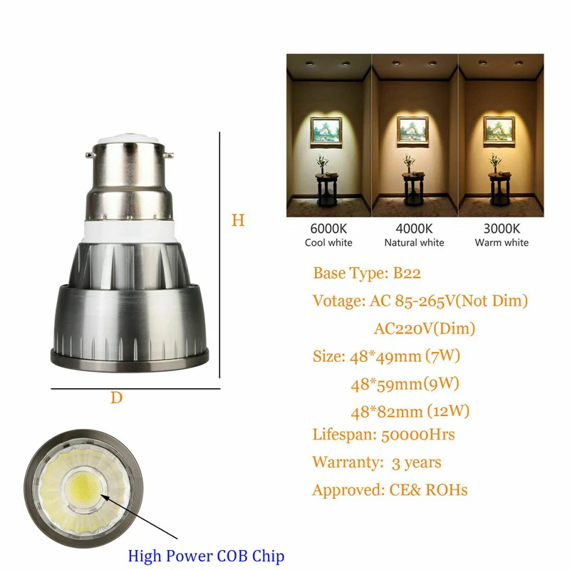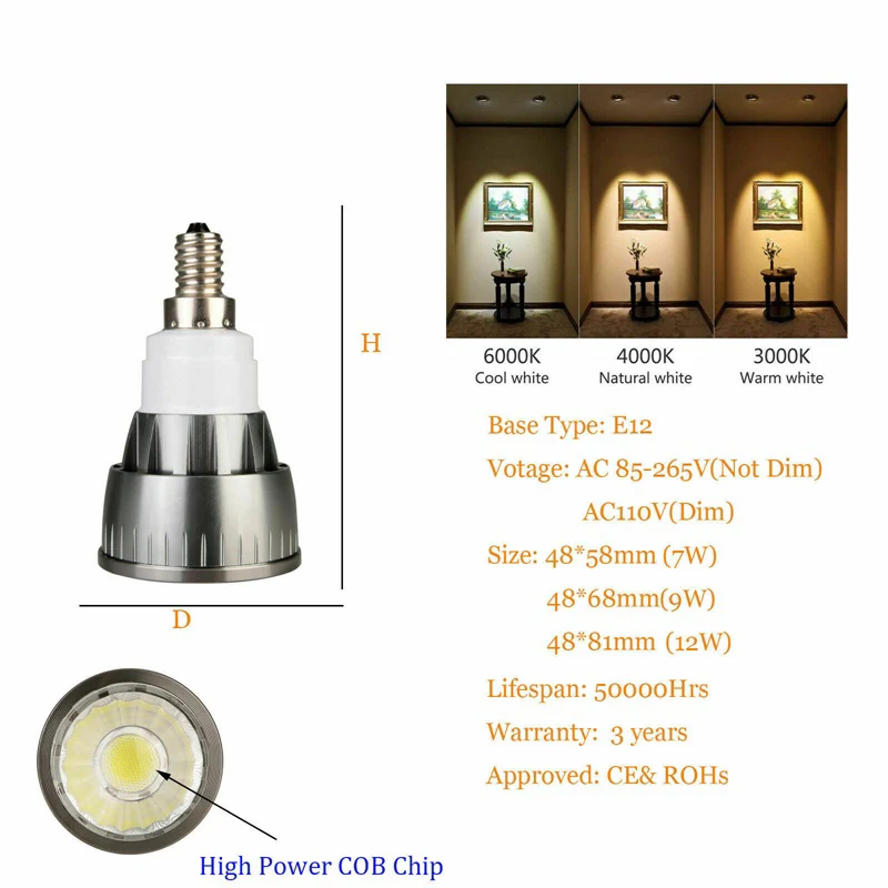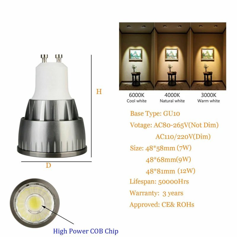 GU10 MR16 Светодиодный светильник с регулируемой яркостью E12 E14 E27 GU5.3 B15 7W 9W 12W COB прожектор лампы теплый холодный белый нейтральный белый 12V 220V 110V