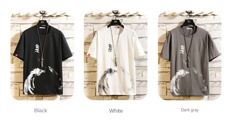 Мужская футболка в китайском стиле с забавным аниме принтом и круглым вырезом, японские Свободные Черно-Белые Серые Хлопковые футболки, мужская летняя уличная мода JApanese Top