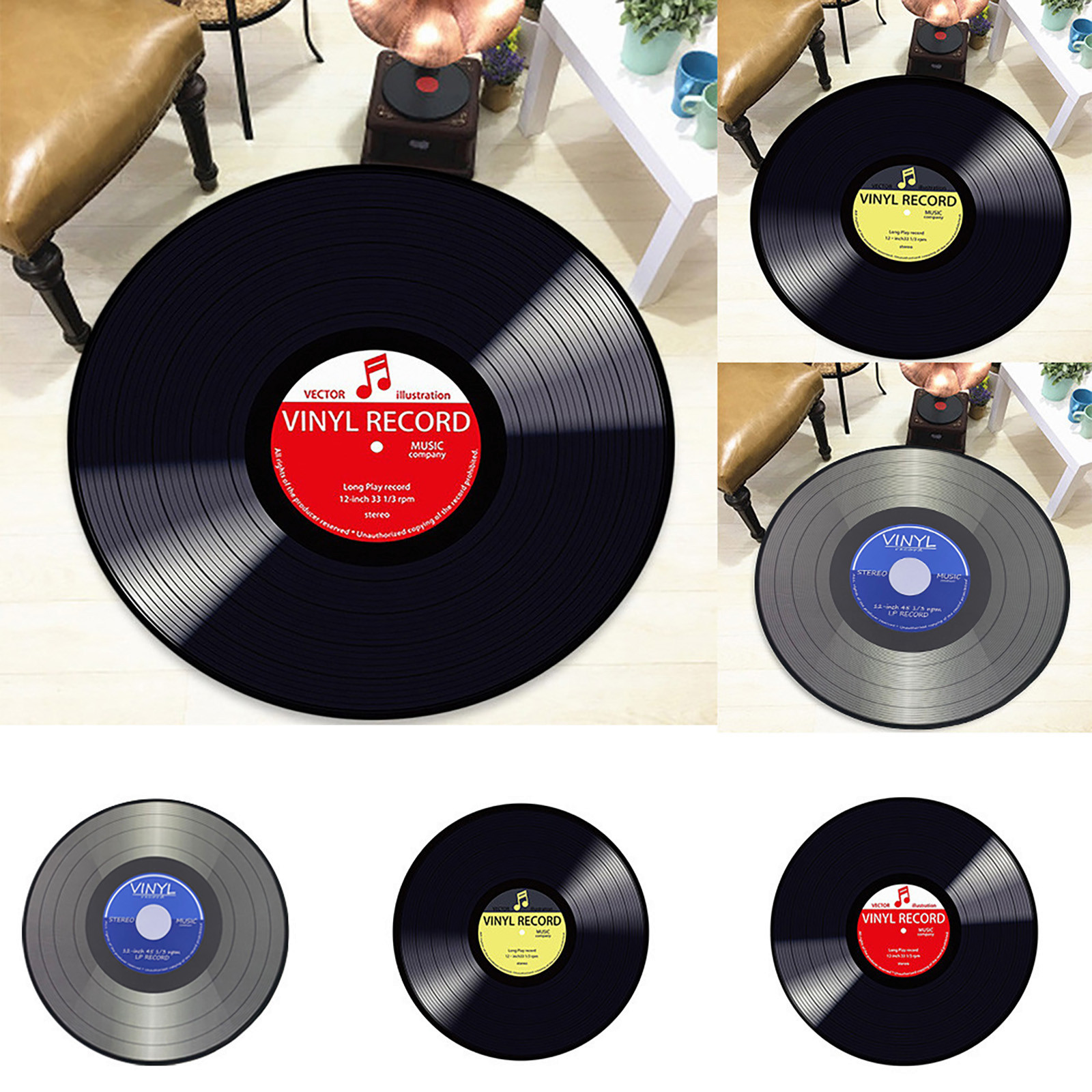 Виниловая запись Напечатанный Мягкий тканевый круглый напольный коврик ковер для спальни