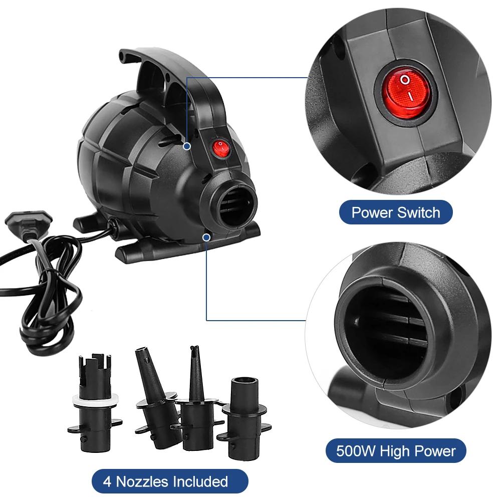 500 Вт Высокая мощность для быстрой надувания, экономя много времени и силы.