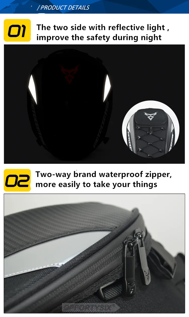 Многофункциональный рюкзак, легко устанавливается на мотоцикл, легко вынимает рюкзак. Его можно использовать как рюкзак для мотоцикла, сумка для заднего сиденья мотоцикла, сумка на топливный бак мотоцикла, сумка для седла мотоцикла, сумка для мотоциклетного шлема и т. д.
