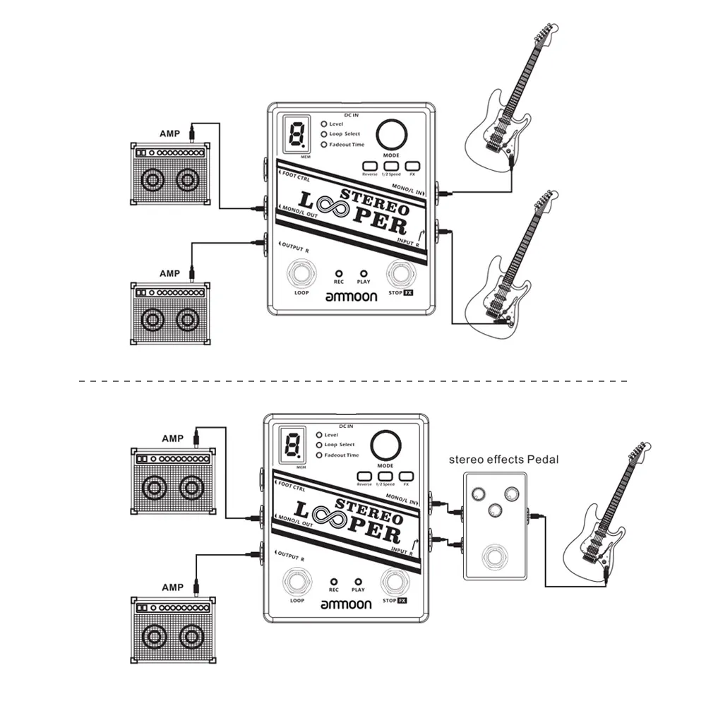 3rd footswitch может быть добавлен через ext вход для еще большего количества рук свободного управления.