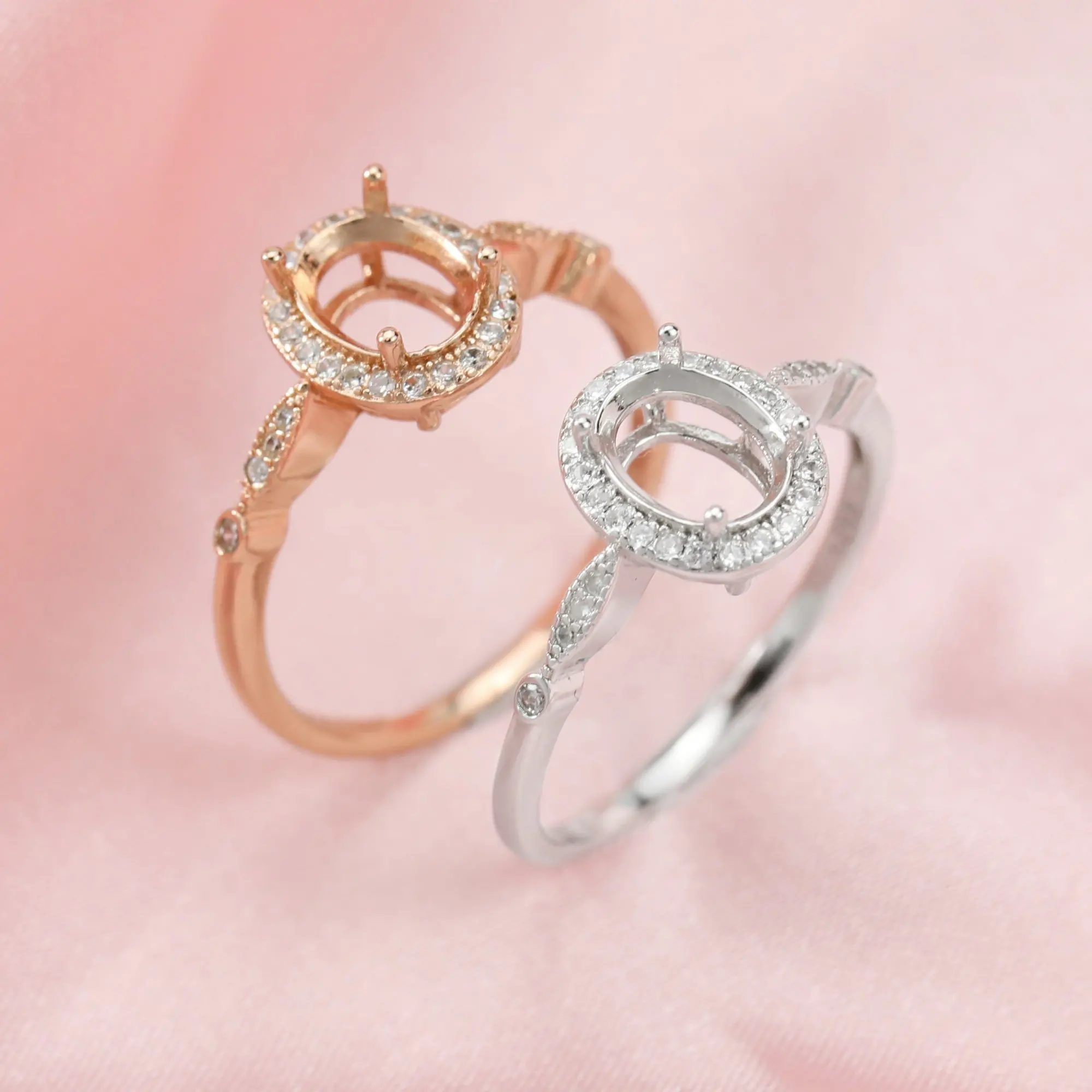 Овальное кольцо в форме зубца, 14K/18K, розовое Белое золото с Moissanite акцентами, сделай сам, винтажный стиль, ободок, лоток для драгоценных камней с бриллиантами 1224057