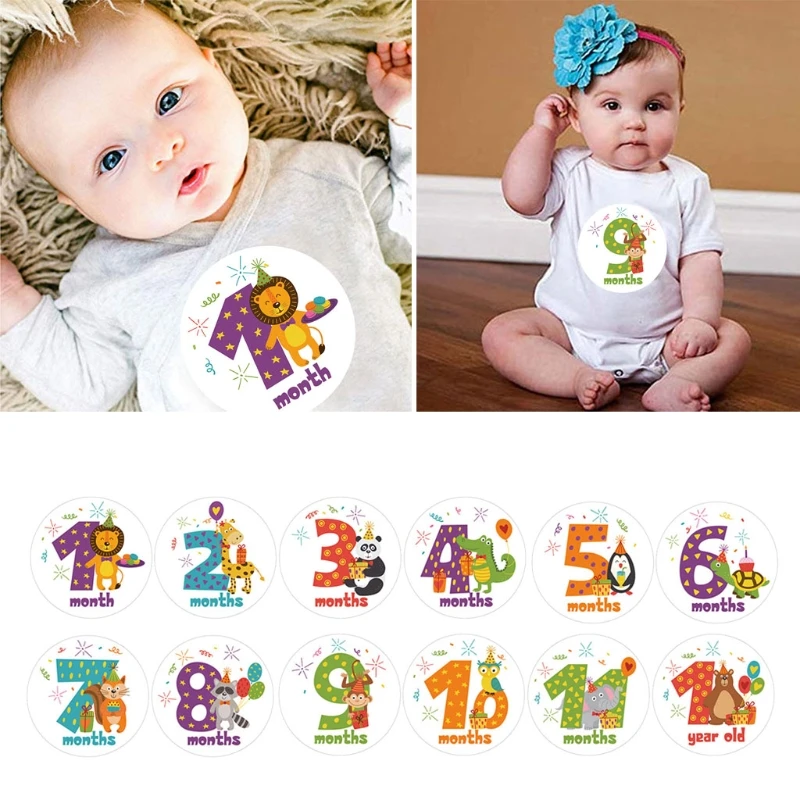 Прекрасный Круглый месяц стикер, чтобы записать ваш ребенок ежемесячный рост и изменения.