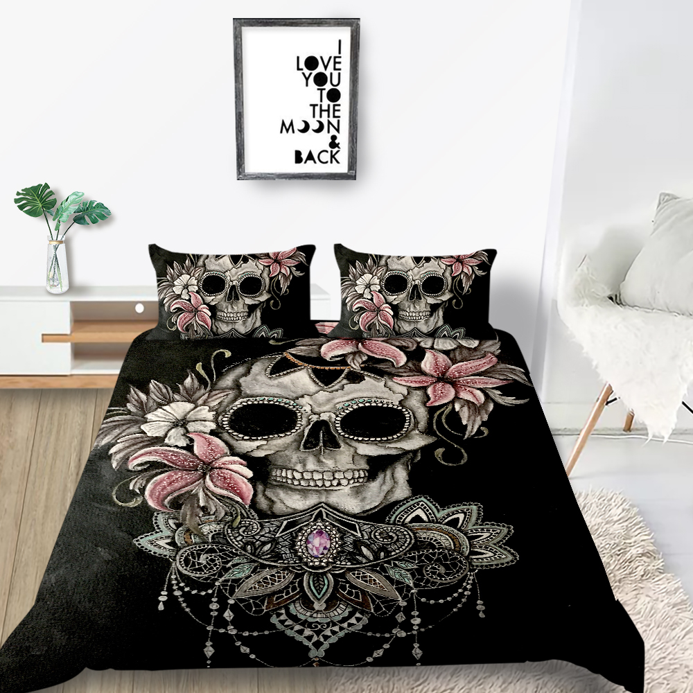 Fanaijia king набор пододеяльников с наволочкой, богемный принт с черепом, Комплект постельного белья из 3 предметов, Королевский размер, кровать AU Queen, лучший подарок, постельное белье