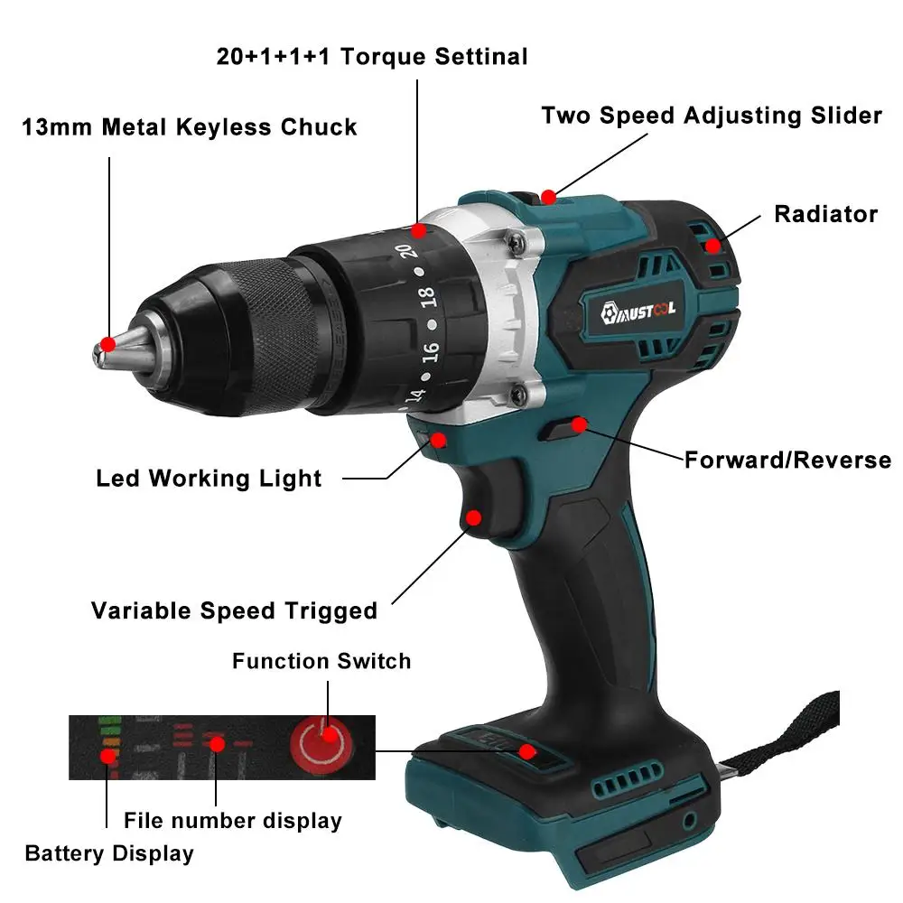 -20 + 3 режима, обеспечивает 20 режимов крутящего момента и 3 режима сверления Для высокоточной работы.