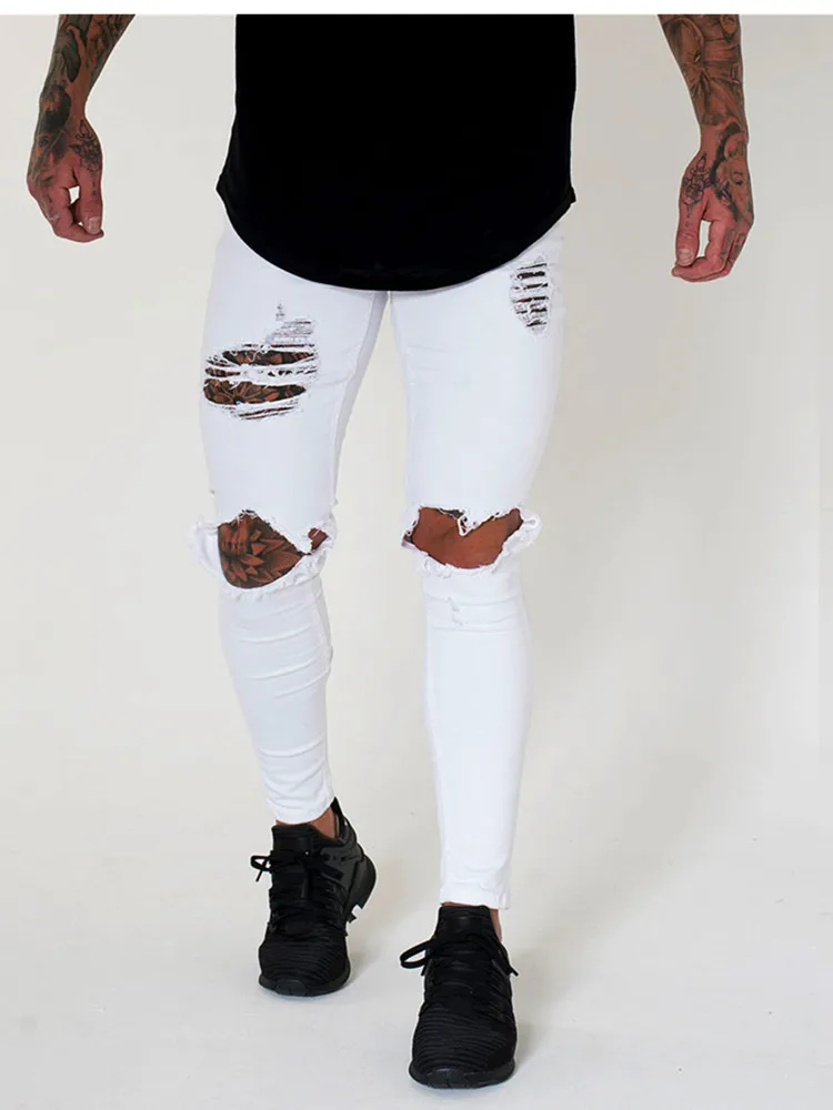 Мужские джинсы с дырками Классические облегающие до колена вышивкой | Мужская