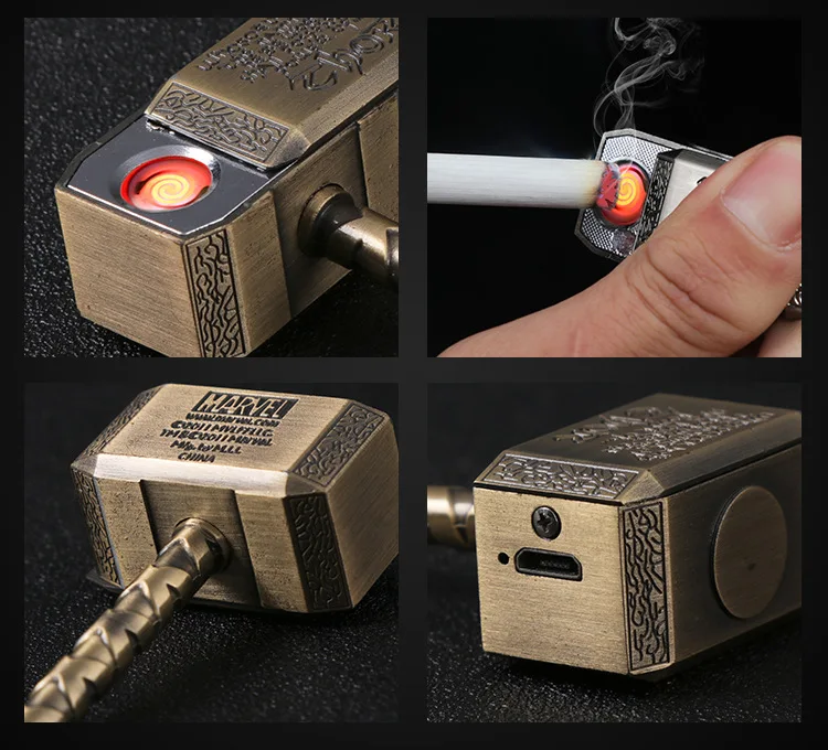 Мини Тор молоток кулон перезаряжаемая беспламенная USB Зажигалка креативное кольцо для ключей ветрозащитная металлическая зажигалка аксессуары для сигарет