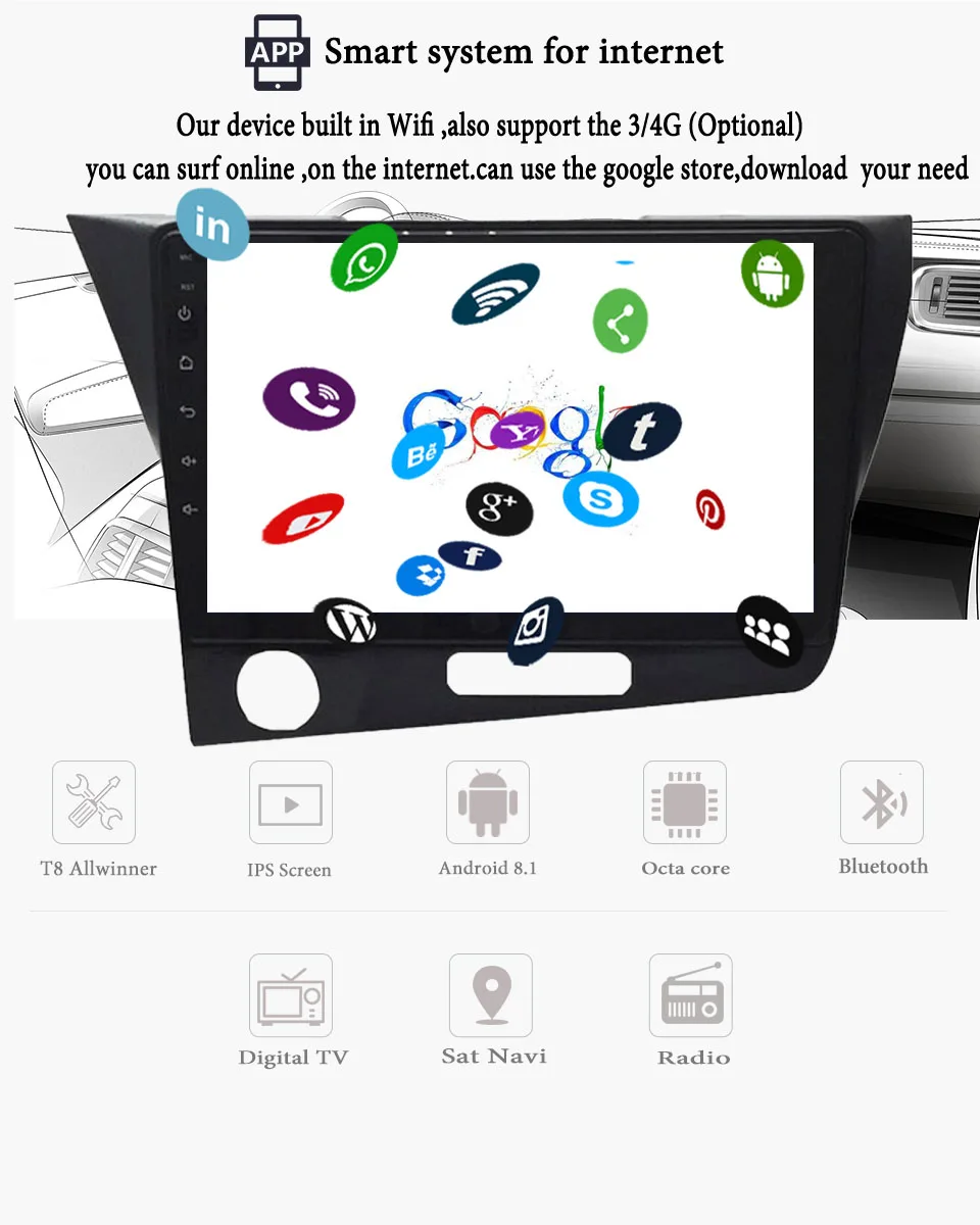 Добавьте дополнительные, DVR TV-BOX,DAB +,3/4G ключ, камеру и т. д. по этой ссылке: