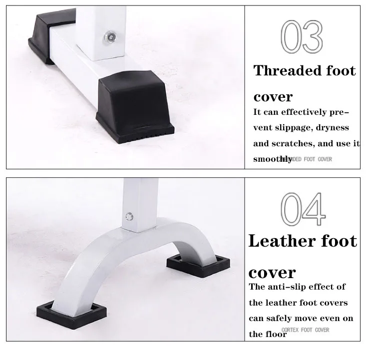 Защита от пота и коррозии из искусственной кожи Общая Лежащая доска плохая, из искусственной кожи водонепроницаемая, влагостойкая, износостойкая и грязеотталкивающая Утолщенная подушка Подушка сиденья толстая, безопасная и удобная, позволяет легко и счастливо тренироваться Крышка для ног с резьбой Может быть эффективным противоскользящим, сухим и устойчивым к царапинам, более стабильным Кожаный чехол для ног Нескользящий эффект кожаных чехлов для ног может безопасно двигаться даже на полу