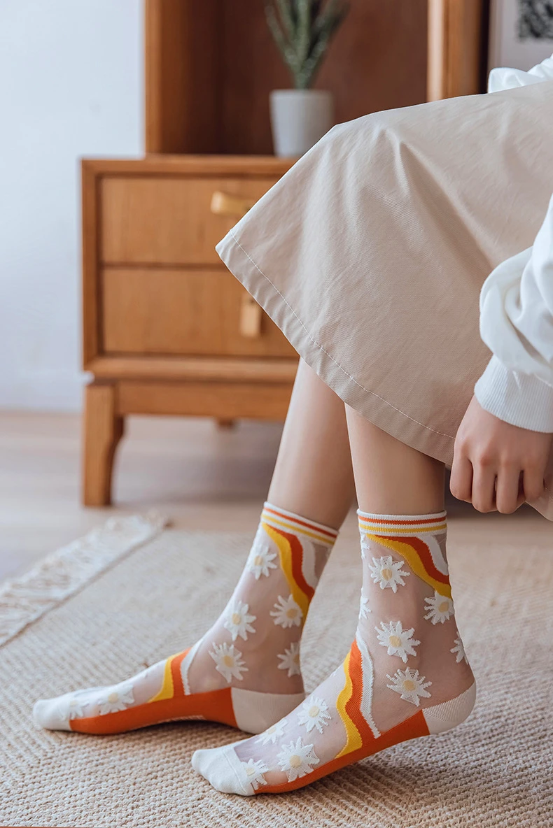 Женские белые носки со снежинками Зимние хлопковые короткие красного цвета для