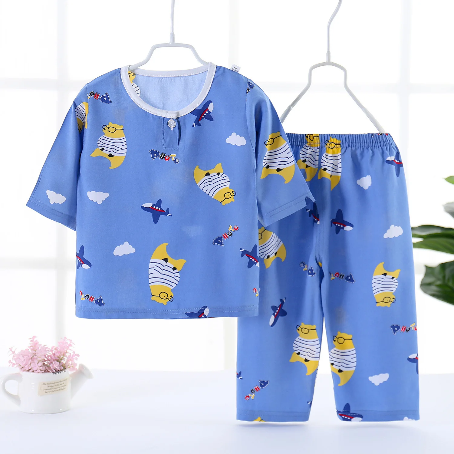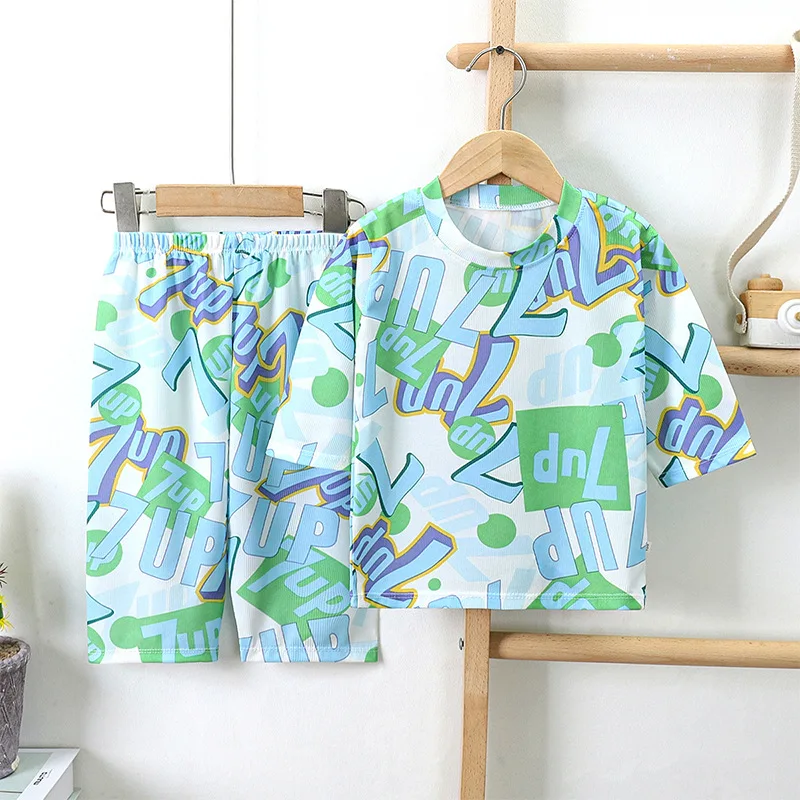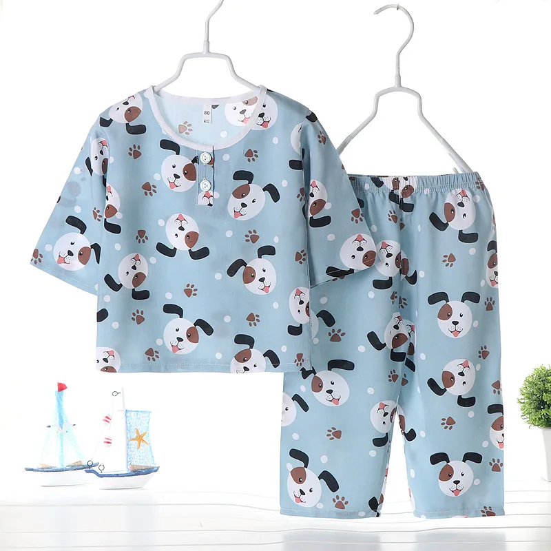 Новинка 2022 года, детские летние Пижамные комплекты для мальчиков и девочек Милая футболка из поплина с длинными рукавами и круглым вырезом Топы и штаны комплект одежды для сна для малышей