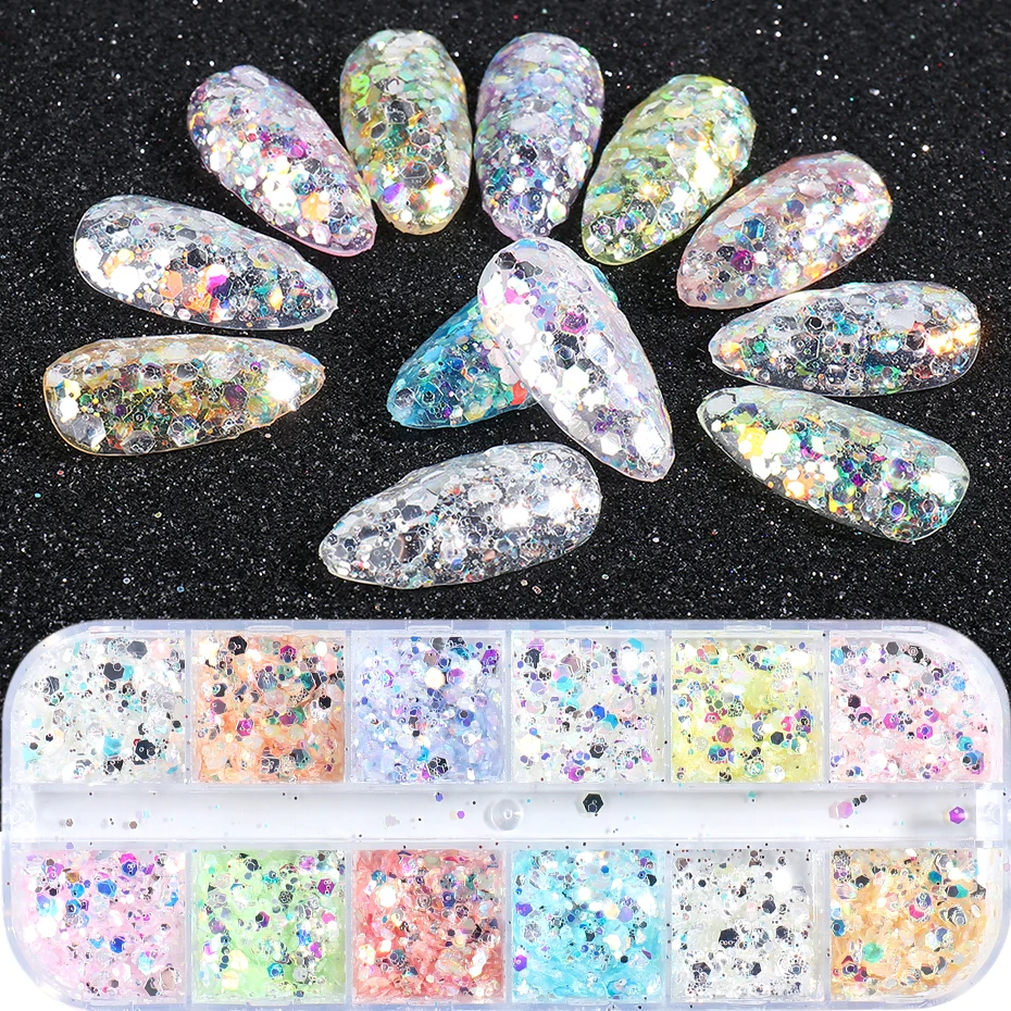 Типы: голографические блестящие хлопья для ногтей Aurora