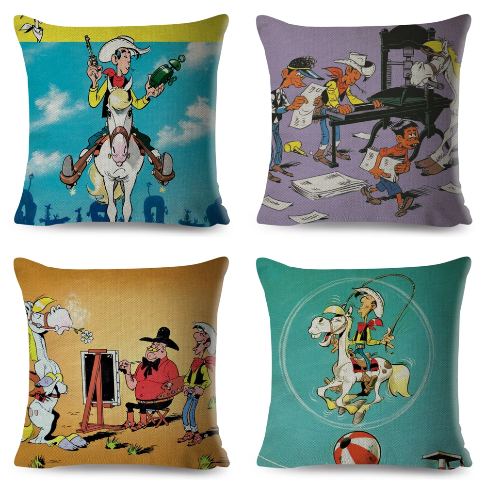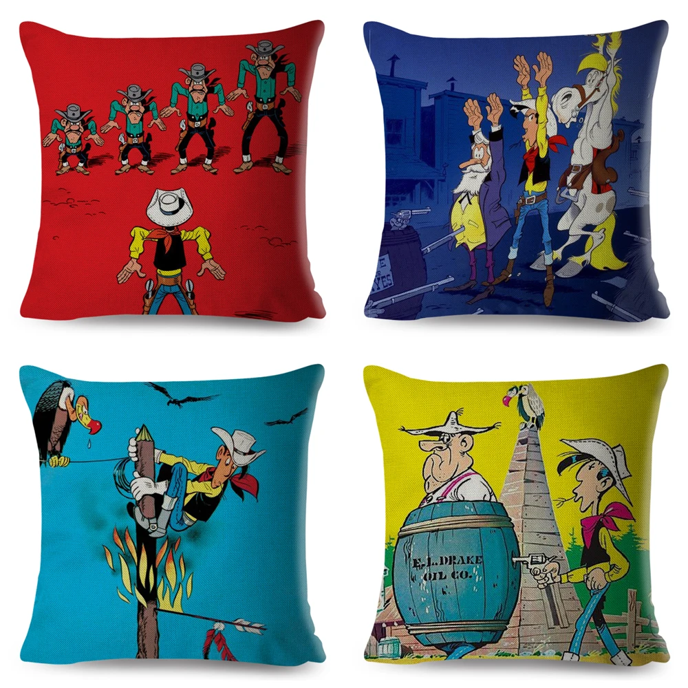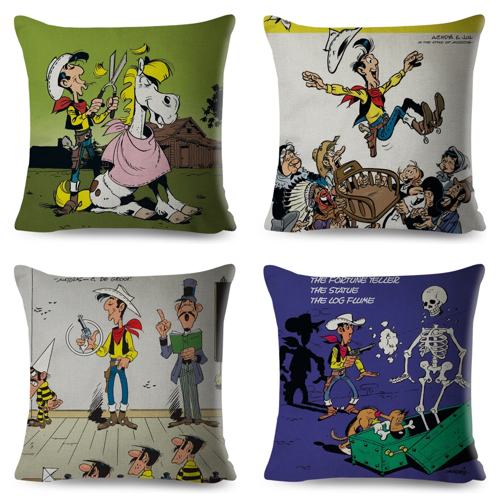 Чехол для подушки Lucky Luke, Декор, мультяшный аниме принт, наволочка для дивана, домашняя детская комната, наволочка из полиэстера чехол 45x45cm