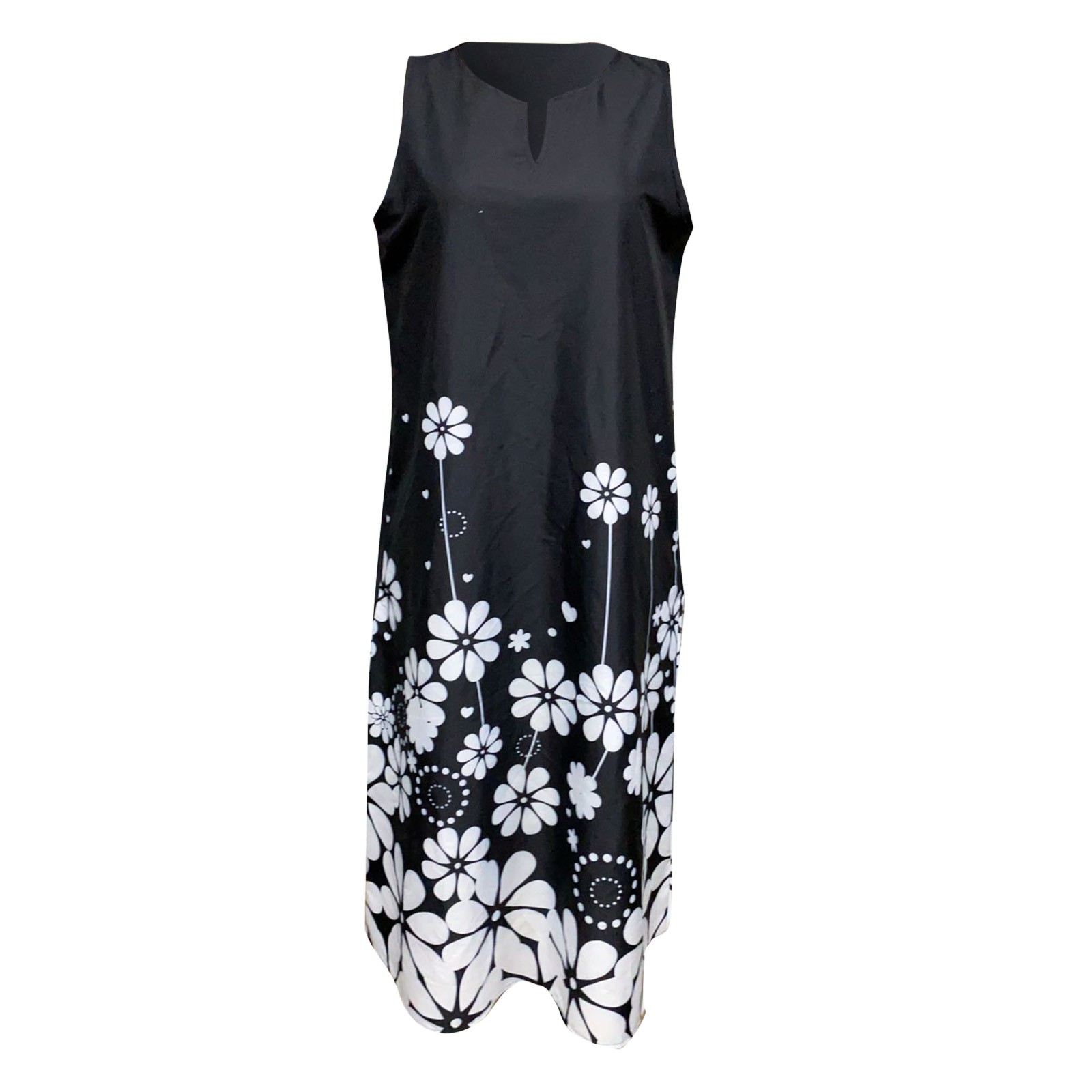 【Особенности】: V-образный вырез, без рукавов, принт, платье в пол