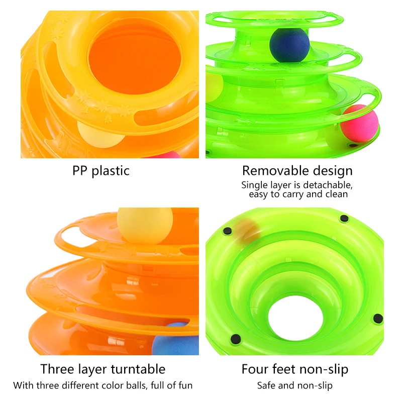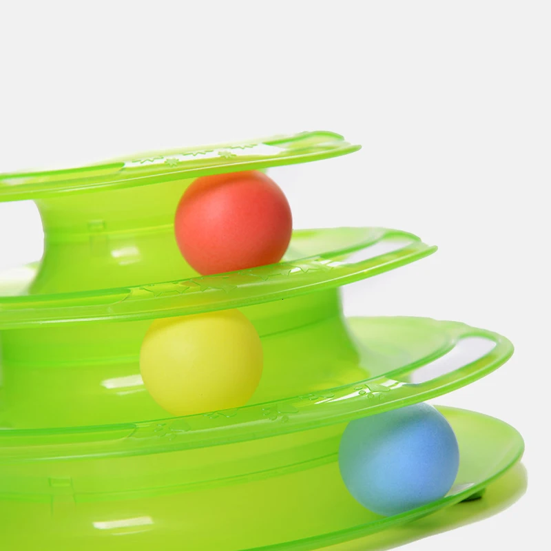 Башня треков-игрушки для кошек и кошачья башня, интерактивный роликовый тренажер для домашних животных, 3 уровня, игрушка-шарик-тизер для кошек с 3 красочными шариками
