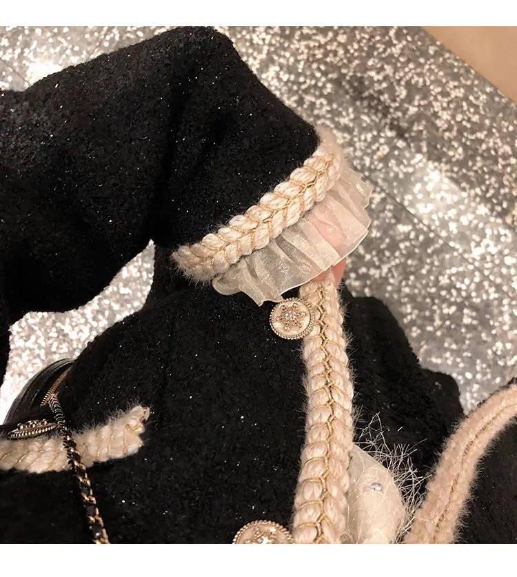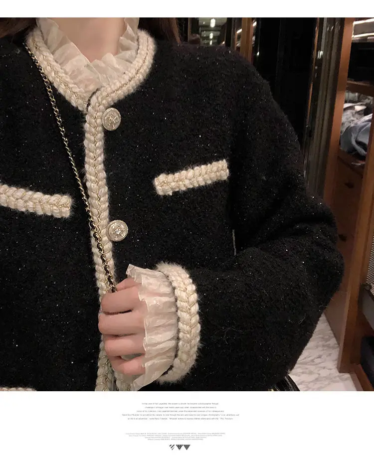 Женское кружевное пальто яркая твидовая Женская куртка милая Осенняя верхняя