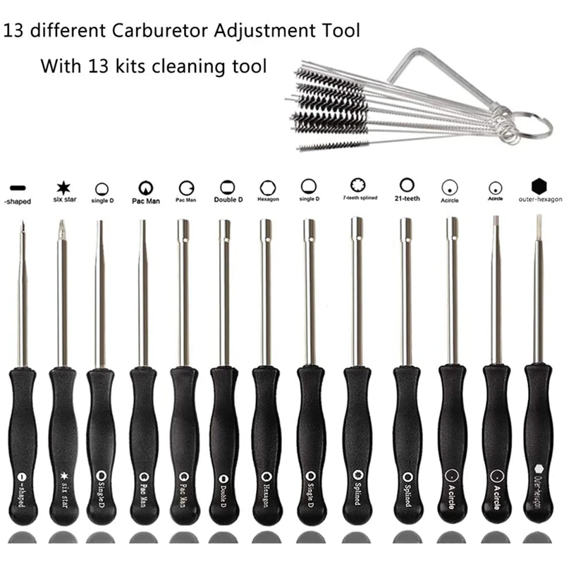 13 различных инструмент для настройки карбюратора держит ваши 2 цикла двигателей работает на хорошей производительности и используется для большинства 2 цикла карбюратора двигателя. Незаменимо для тех, кто поддерживает персональное оборудование, плюс вещи для друзей и семьи