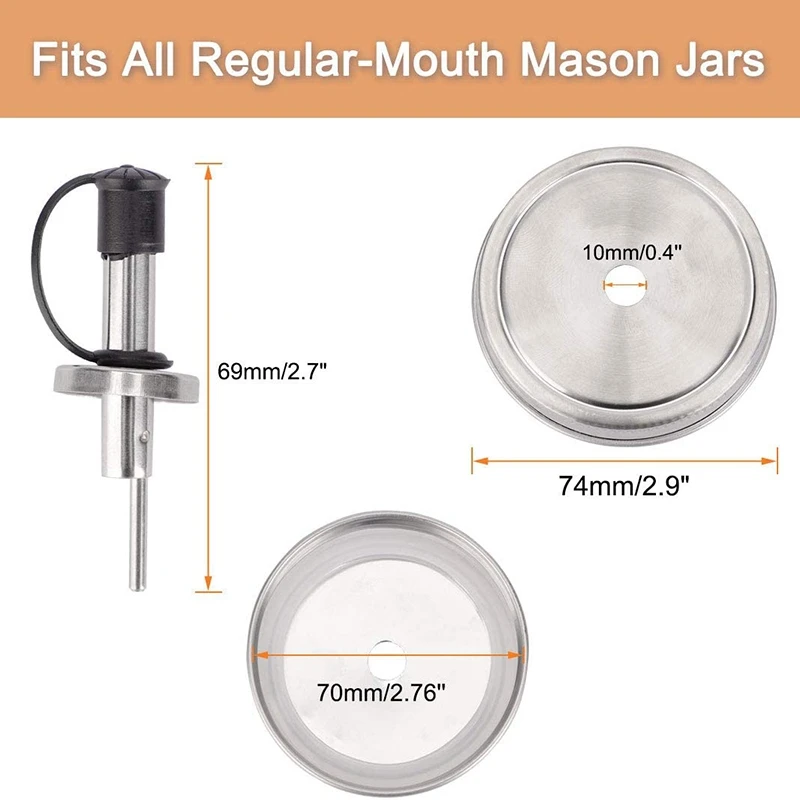 Посылка входит: упаковка из 2 крышек для носиков Мейсона, силиконовые уплотнители в комплекте. Крышки подходят для большинства обычных бутылок с горлышком (70 мм/2,76 дюйма)