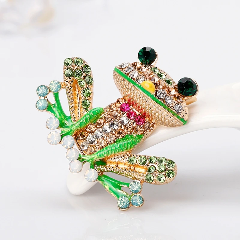 Брошь с дизайном «лягушка» булавки для женщин мужчин ювелирные изделия костюм Подарки Эмаль Стразы Красочные R58E