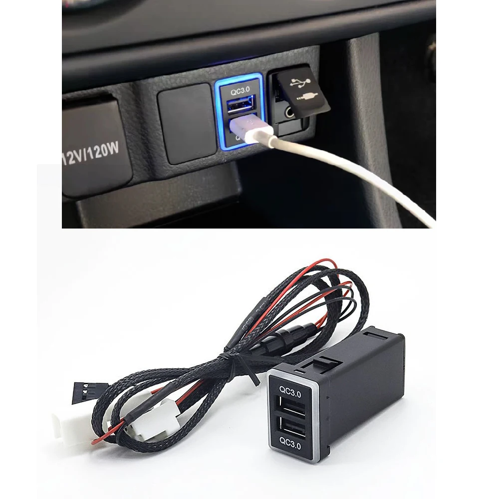 Автомобильное зарядное устройство QC 3,0 с двумя портами и разъемом USB Type C с синим светодиодом 12 В для мобильных устройств Toyota для iPad iPod