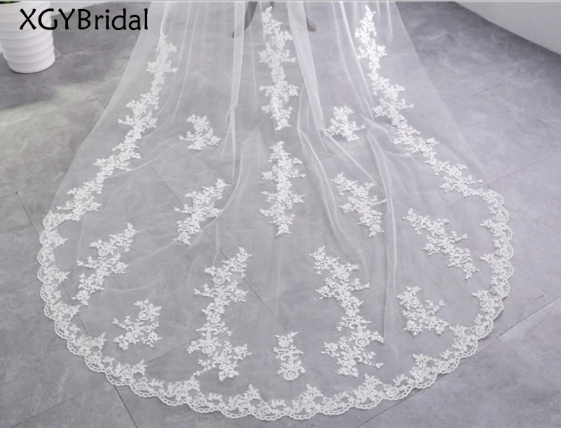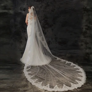 Модные собор свадебная фата туфли на шнурках для невесты головной убор новая горячая распродажа двойной Слои 3,5 м Дайвинг супер длинные кромка белого цвета или цвета слоновой кости, платье с вуалью