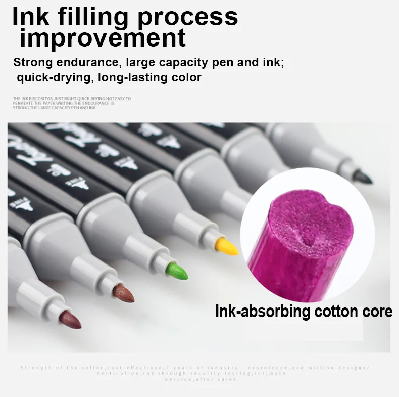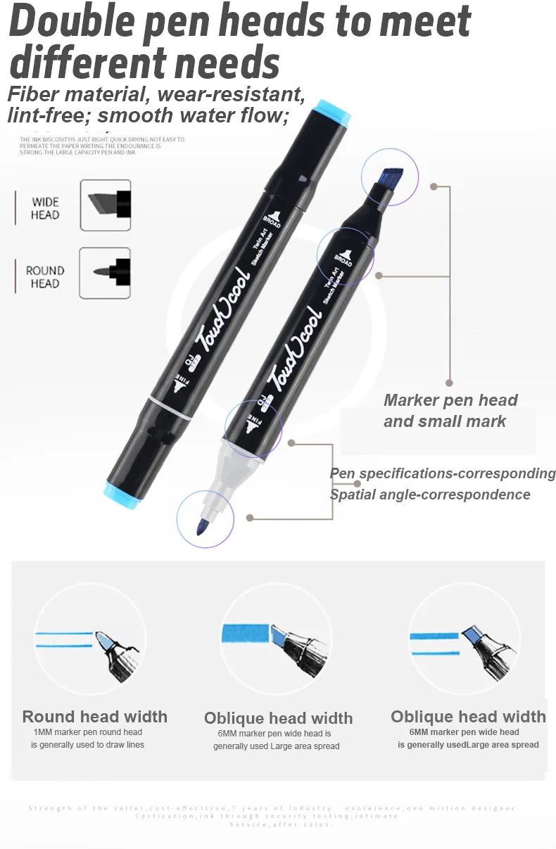 Equipped with a beautiful black carrying case for ease in travelling and storing.(Except for the 12 pens with plastic box)Good quality.