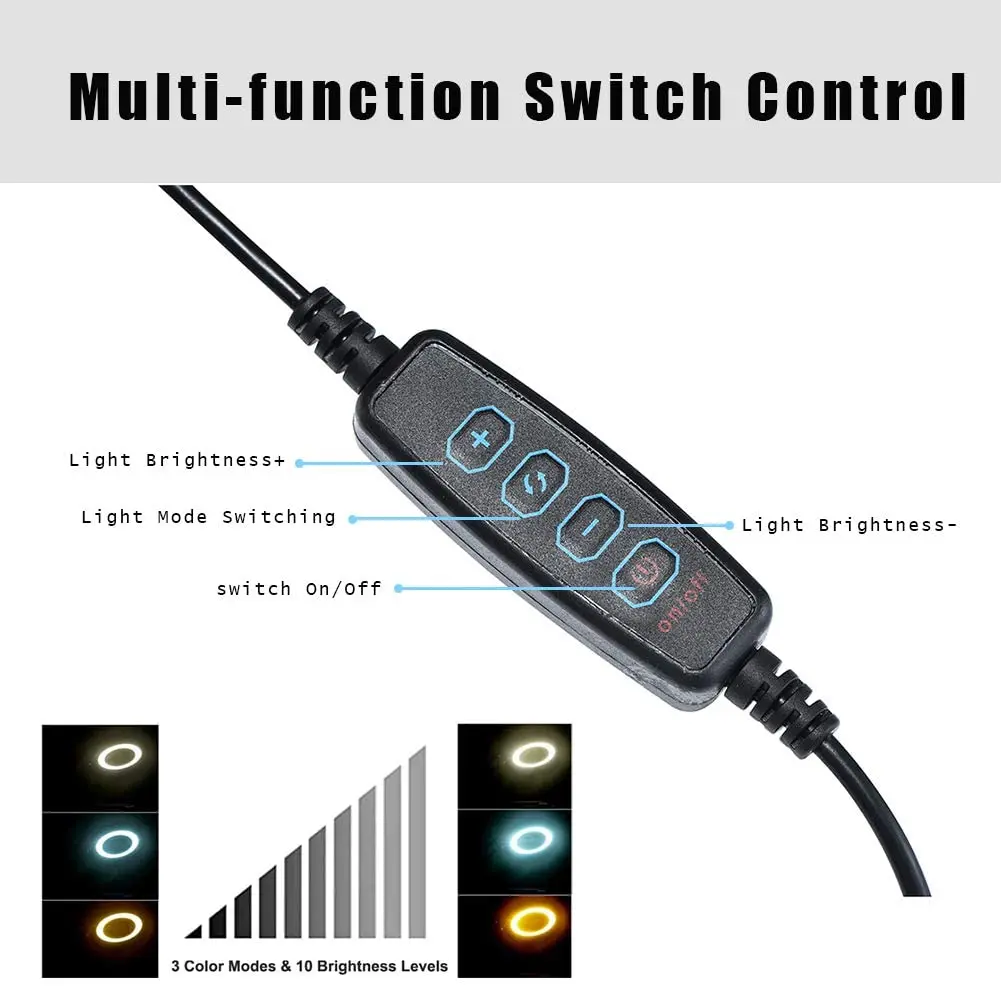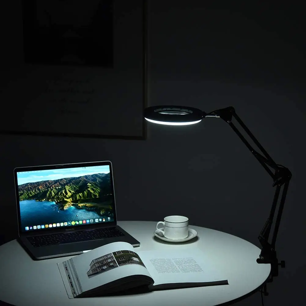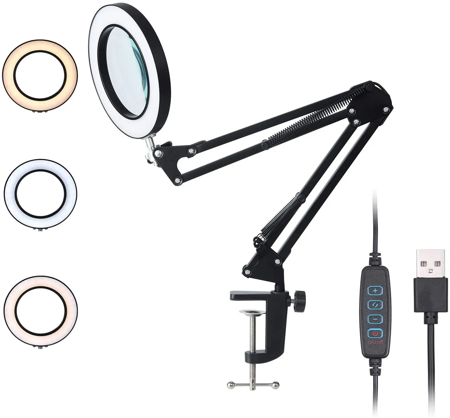 Принимает бесступенчатое регулирование яркости, 3 светильник ing режимы: Этот светодиодный увеличительное стекло лампа имеет 64 высокой яркости светодиодный точечные лампы 3 Цветовая температура: теплый светильник, теплый белый светильник и белый светильник. Каждый режим освещения имеет 10 уровней яркости затемнения. Светильник может быть легко изменен через контроллер. Всего 30 режимов освещения могут удовлетворить все ваши требования.