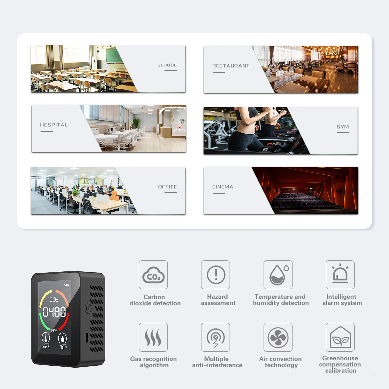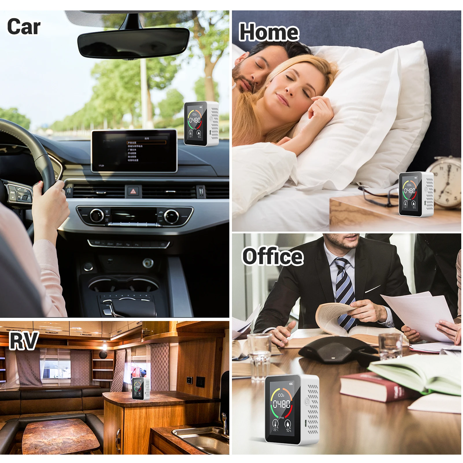 Легкий и портативный детектор CO2 легко переносится и используется в школе, офисе, дома, на колесах и т. д.