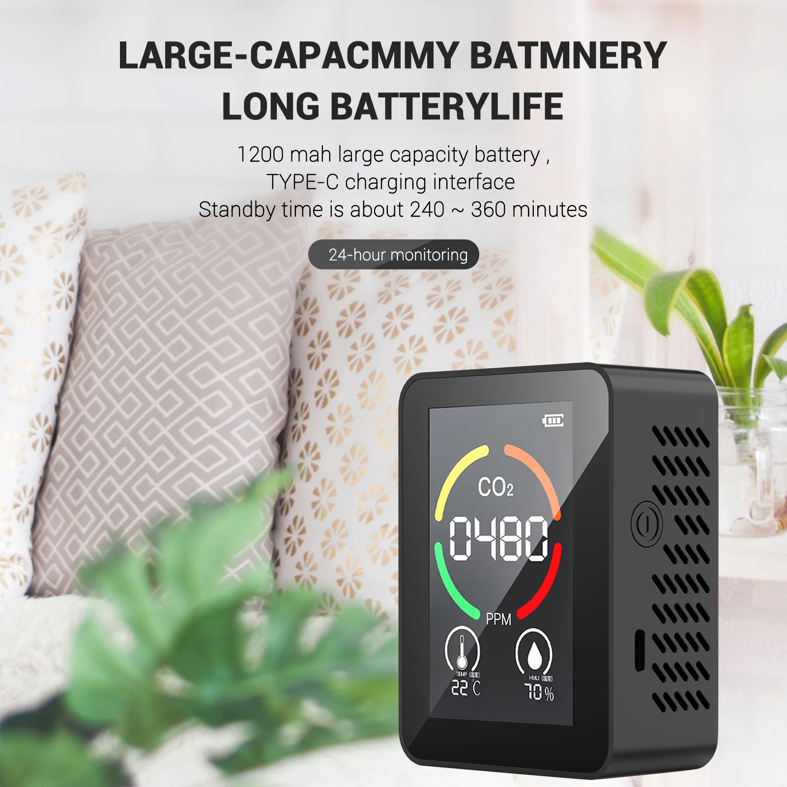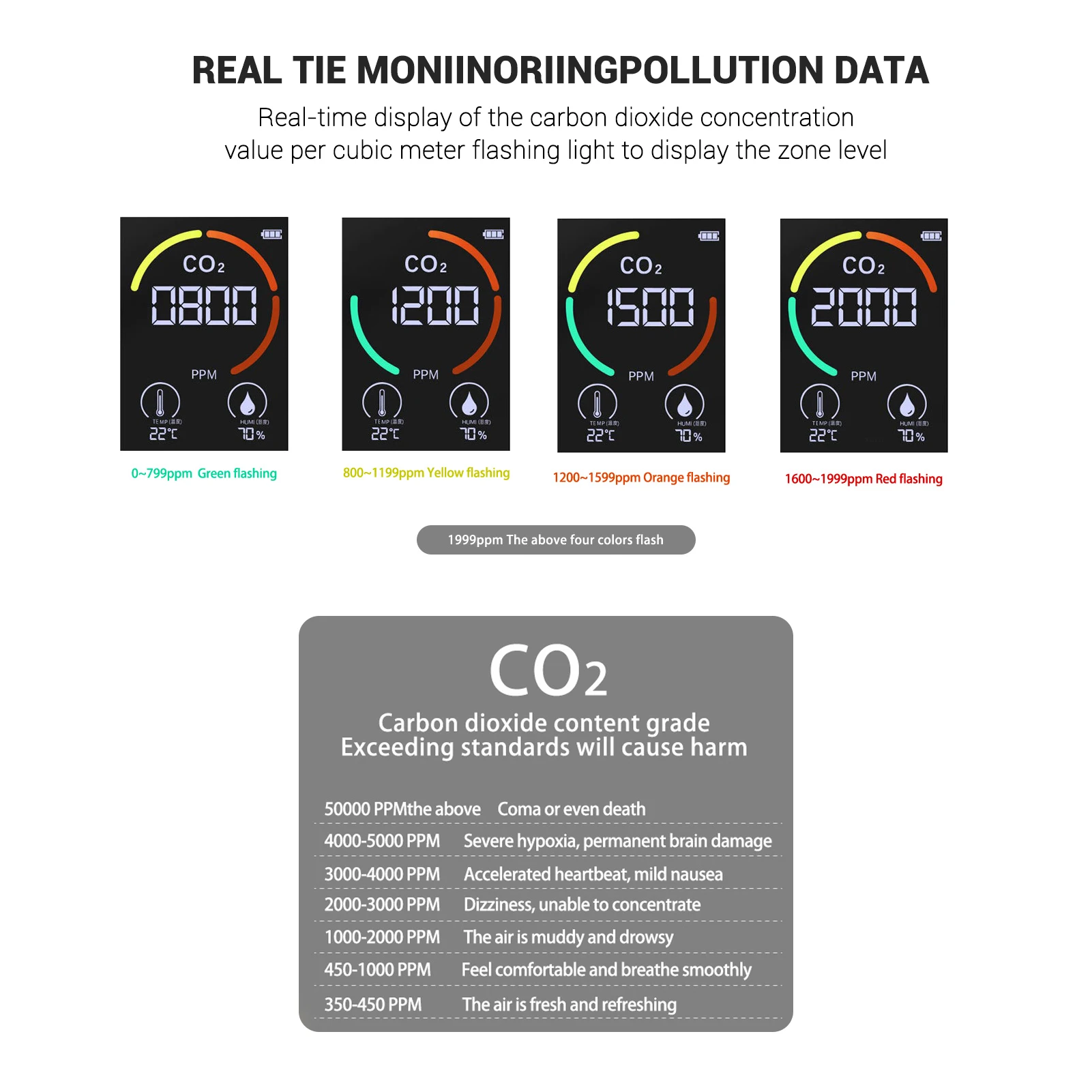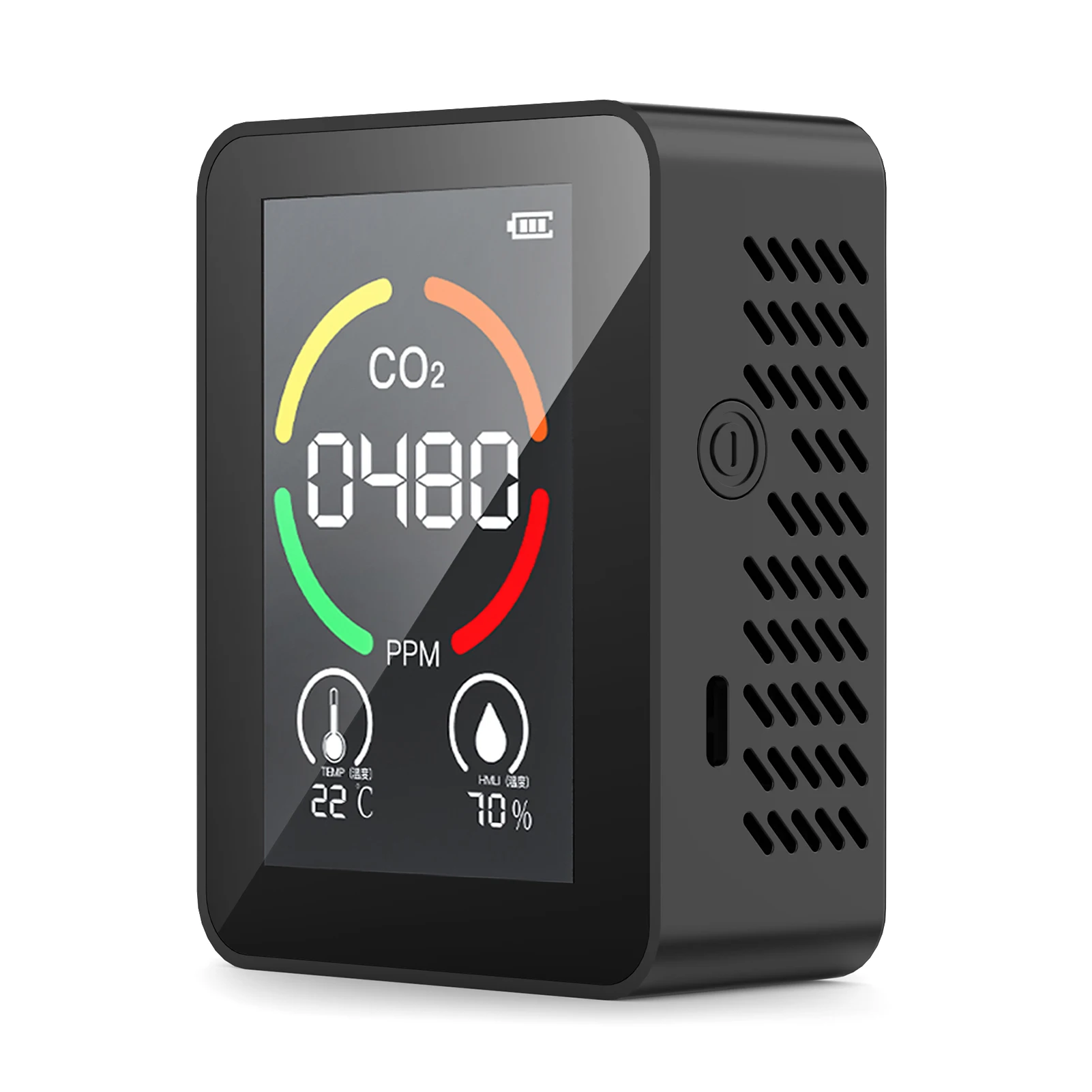 Цветной ЖК-дисплей, четкий для чтения. Цветное кольцо изменится в соответствии с содержанием CO2, легко узнать текущий уровень содержания CO2.