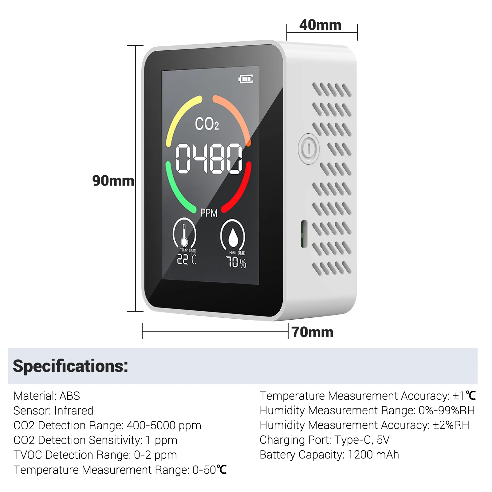 Диапазон обнаружения CO2: 400-5000 ppm
