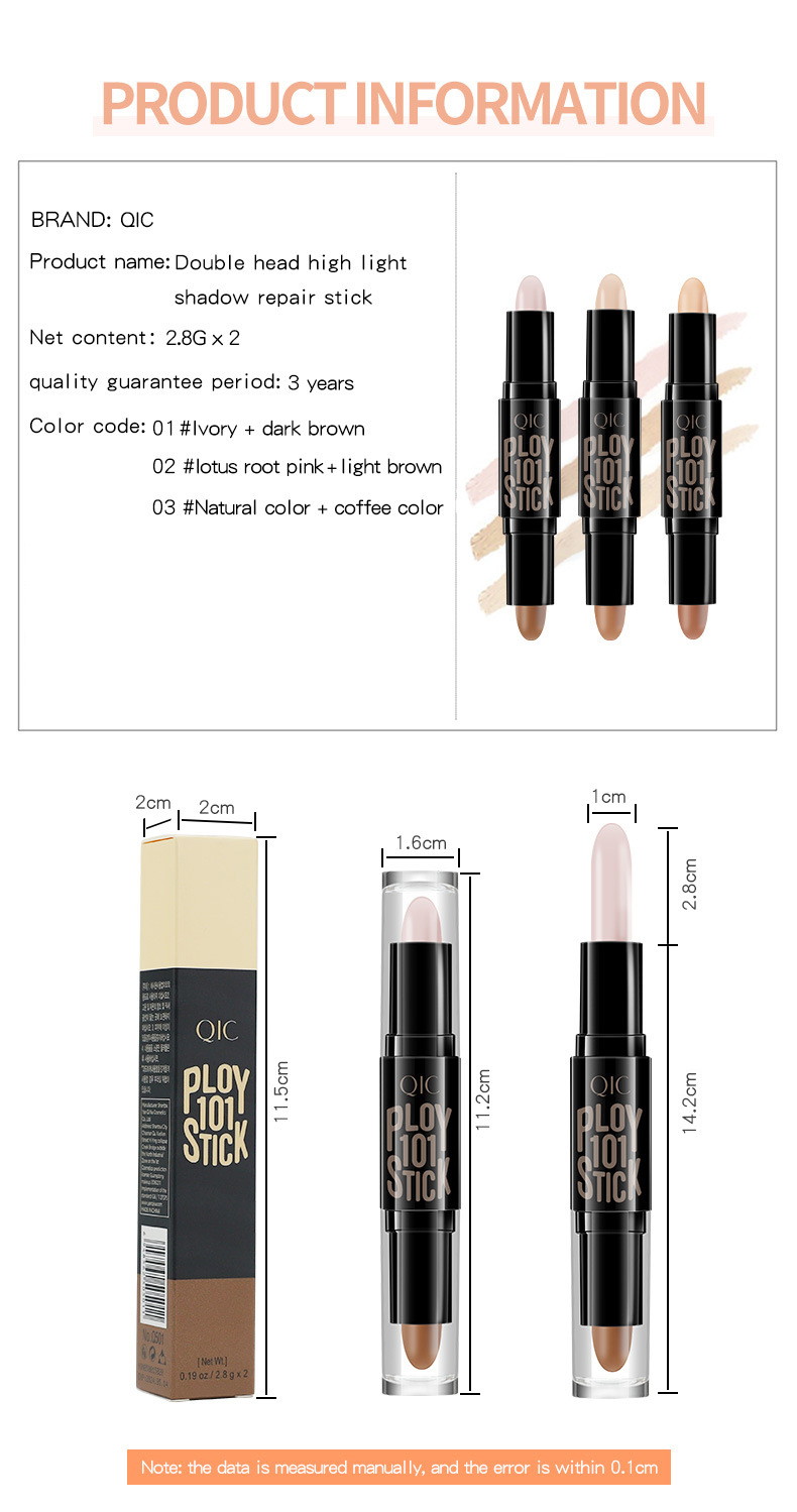 Название продукта: двойной контур лица палка Тип кожи: все типы кожи Эффективность продукта: тени + изюминка Создайте трехмерный макияж Срок годности: 3 года