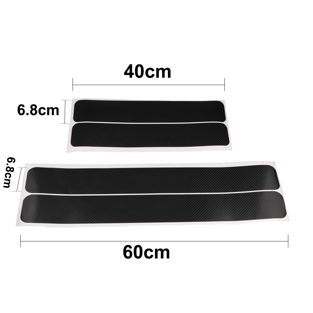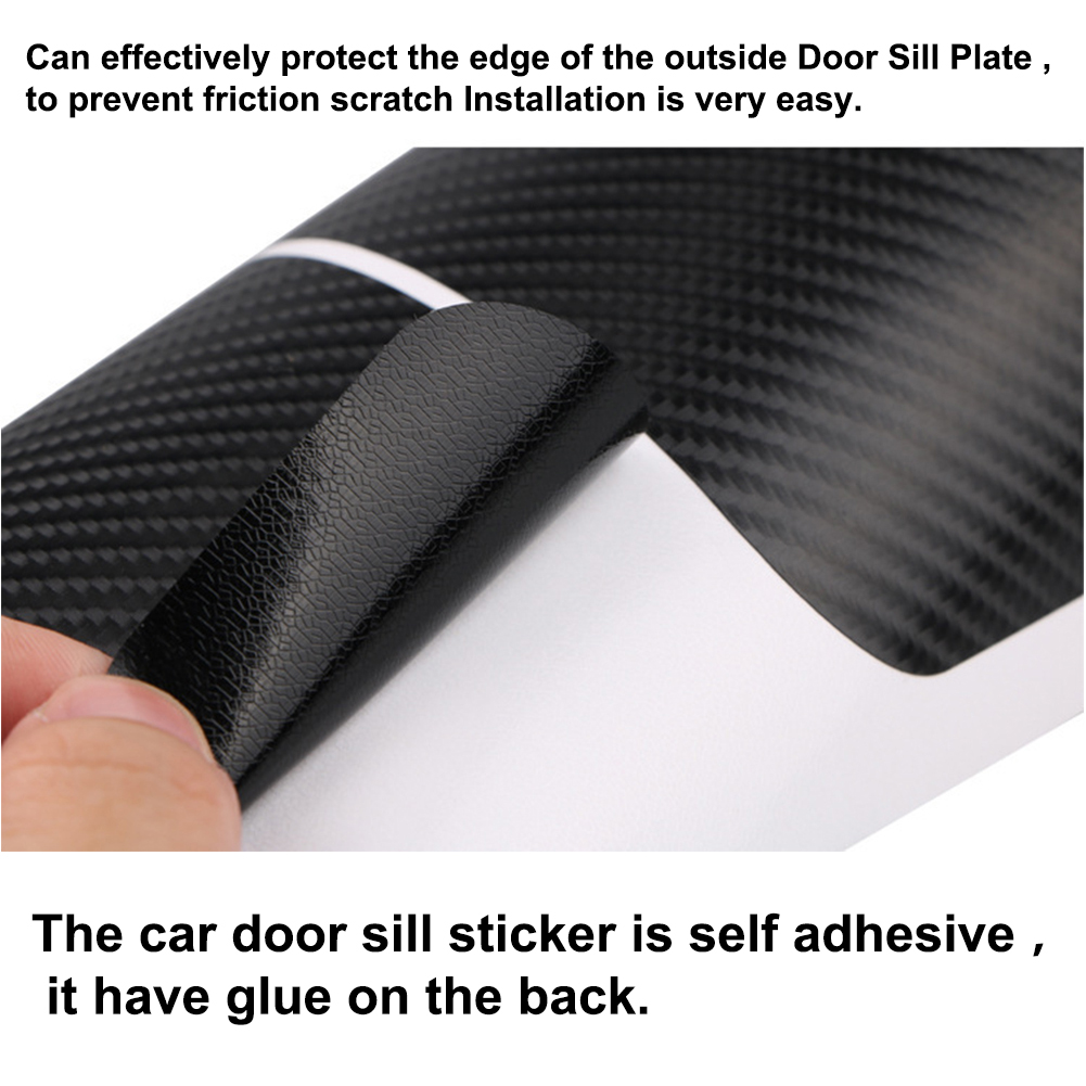 6. Размер:Наклейка на порог передней двери: 60 см * 6,8 смНаклейка на порог задней двери: 40 см * 6,8 см7. Посылка: 4 шт. в комплекте (2 шт. накладки на порог передней двери + 2 шт. накладки на порог задней двери). Характеристика:1. Наклейка на порог автомобиля самоклеющаяся2. Усадка и складывание не меняют свою форму3. Водонепроницаемый, противоскользящий, пылезащитныйПоглощает удары и предотвращает появление царапин. Можно покрыть существующие царапины, придать вашему автомобилю особый стиль. Может эффективно защитить край наружной порога пластины, чтобы предотвратить трение царапин lnstallation очень легко. На спине есть клей. Установка:1. Убедитесь, что поверхность, на которую наносится продукт, чистая, сухая и не содержит пыли, жира и воска.2. Определение точного местоположения продукта3. Снимите защитную пленку с клея, тщательно выровняйте, а затем плотно нажмите, чтобы обеспечить правильное сцепление4. Не перемещайте изделие или не мойте машину в течение 24 часов после установки