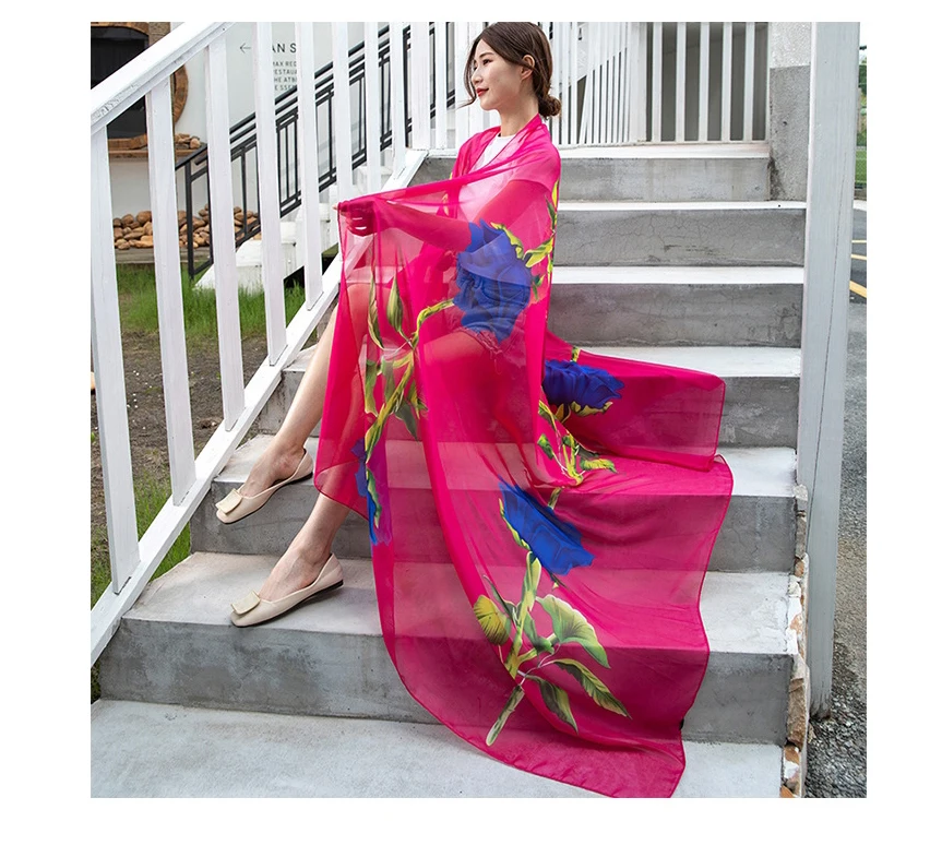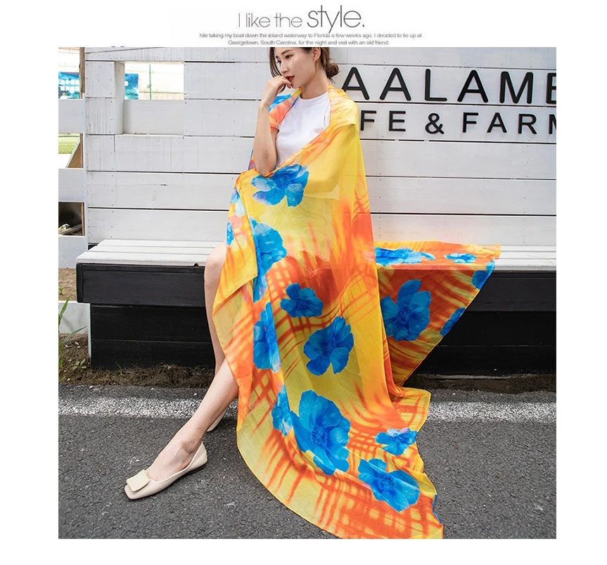 2022 саржевый квадратный шарф Хиджаб Женский цветочный принт пляжные палантины