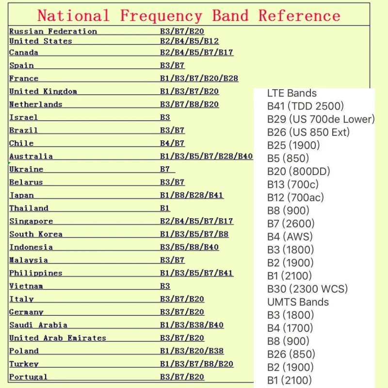 LTE FDD Band B1/B3/B5/B8/B26/B28 (800/900/1800/2100/2600 МГц) |