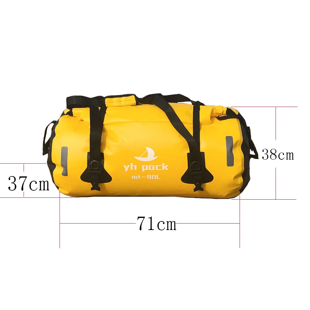 100% водонепроницаемый материал: простой эффективный дизайн в рулоне для 100% водонепроницаемости. 1000D ПВХ, с бесшовным ПВХ материалом с высокой водоотталкивающей конструкцией, водонепроницаемые характеристики надежны, нет необходимости беспокоиться о том, что содержимое промокает. Его можно использовать безопасно даже в дождливые дни.